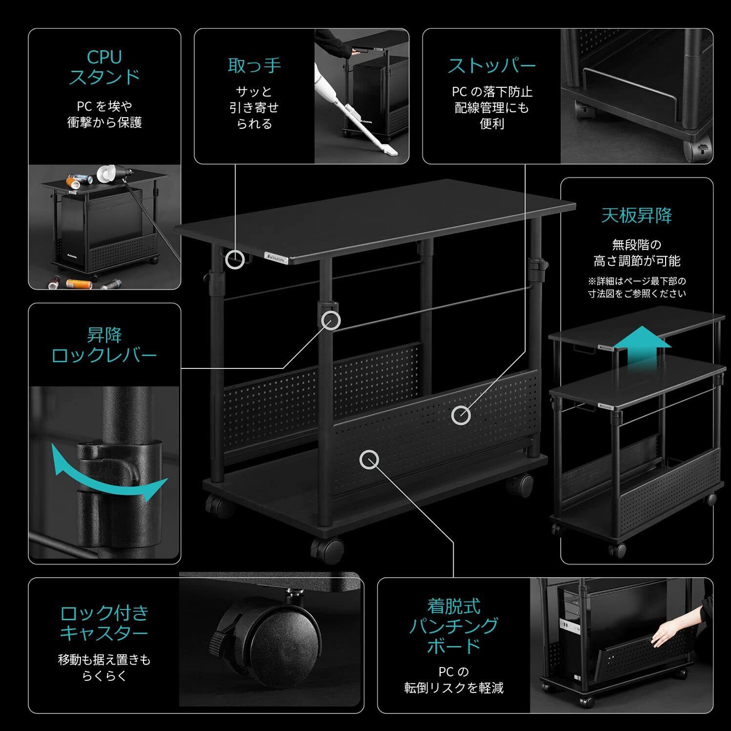 Bauhutte ( バウヒュッテ ) 昇降式 L字デスク ラージ パソコンラック pcラック ( 幅 39 × 奥行 82 高さ 57-78 cm ) ブラック BHD-820H-BK