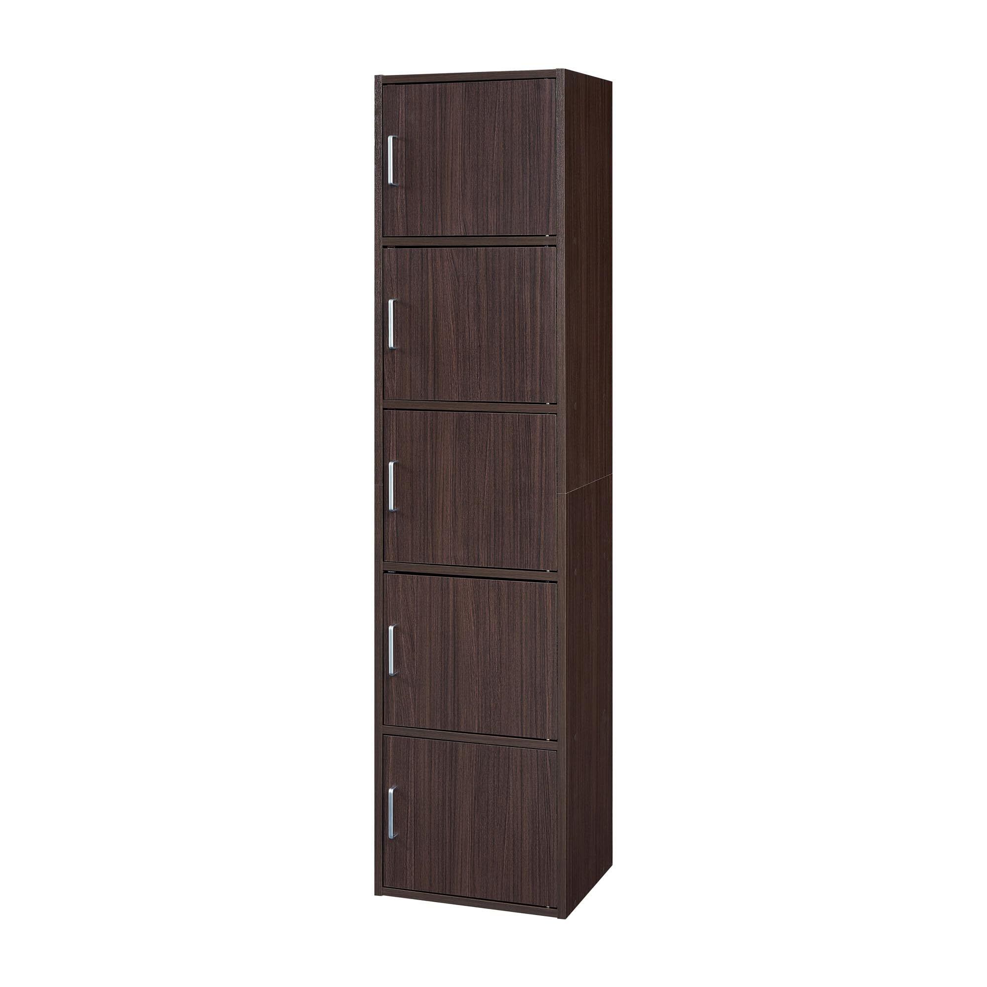 白井産業 収納棚 ラック ストッカー 5段の扉付き収納 同シリーズで組み合わせ自由自在 一人暮らしの部屋や狭いスペースにぴったりサイズ ダークブラウン木目柄 ベーシックデザイン 幅43×奥行39.3×高さ179.7cm FUL-1845 5D DK フルニコ