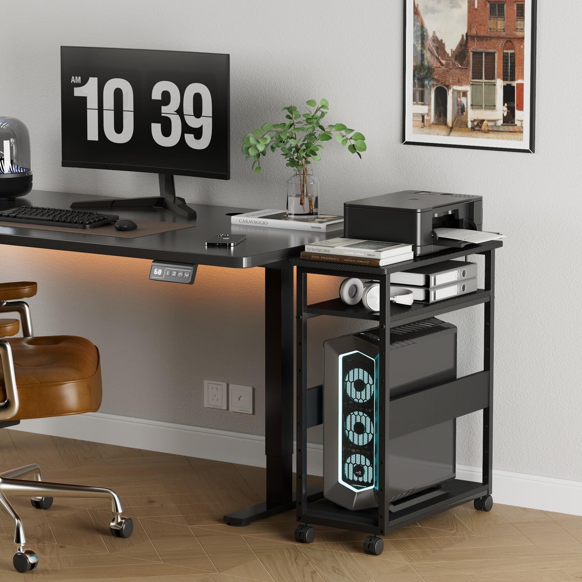 【多用途、コスパ超絶】pcワゴン、pcラック、プリンター台、サイドテーブルなどとして使用して、パソコンを埃や外部からの衝撃から守ります、デスクトップスペースを増やし、ストレージを整理し、作業と学習の効率を向上させるのに最適です。ほとんどのATXケース/ CPUタワーに対応できます。