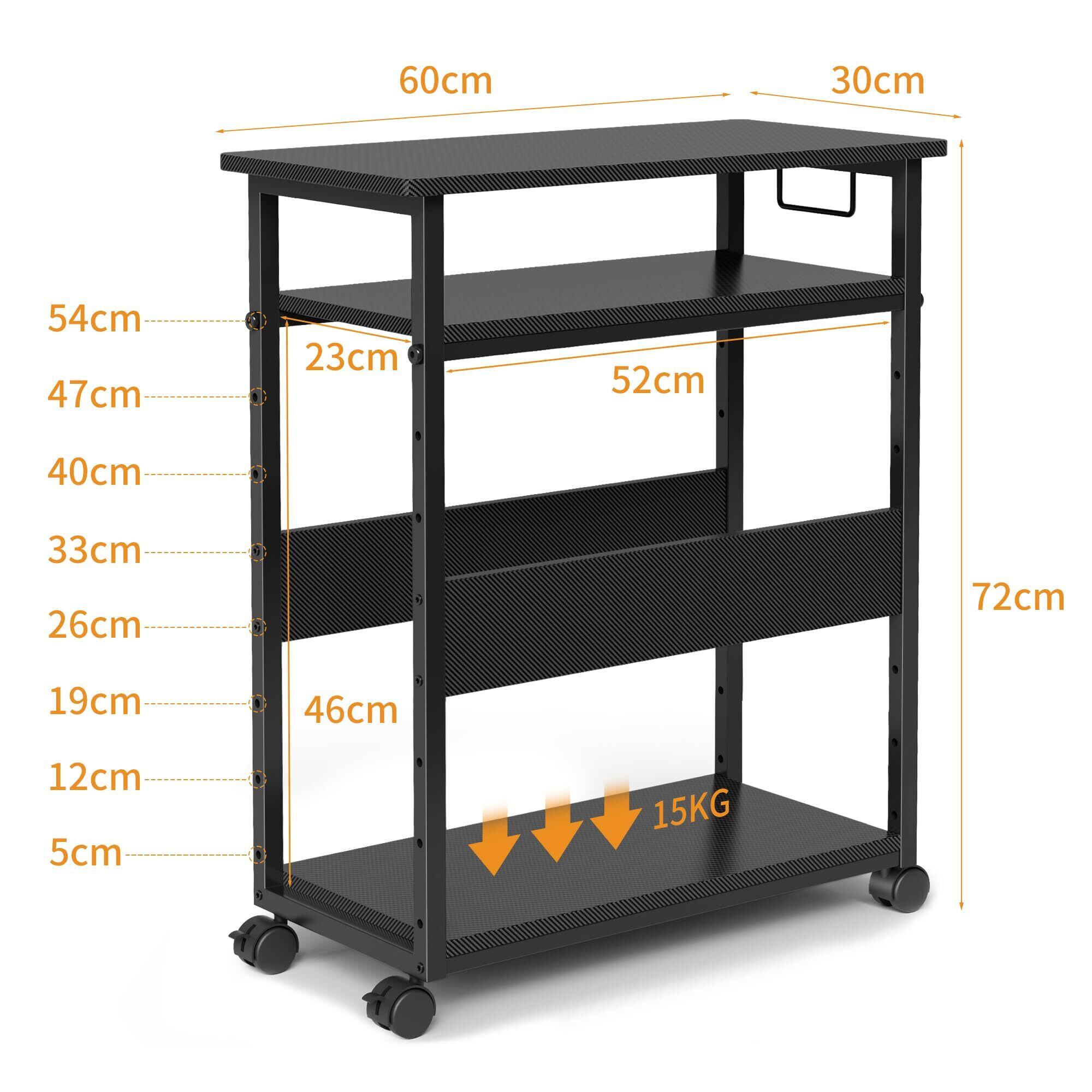 VICTONE パソコンワゴン パソコンラック 幅30×奥行60×高さ72cm PCワゴン PCラック 炭素繊維材質 CPUワゴン PCキャスター サイドワゴン机 袖机 棚板高さ調節可能 ゲーミングデスク プリンター台 サイドワゴン キャスター付き ストッパー付き 収納 転倒防止 収納棚 複合機ワゴン (ブラック, 高度72CM)