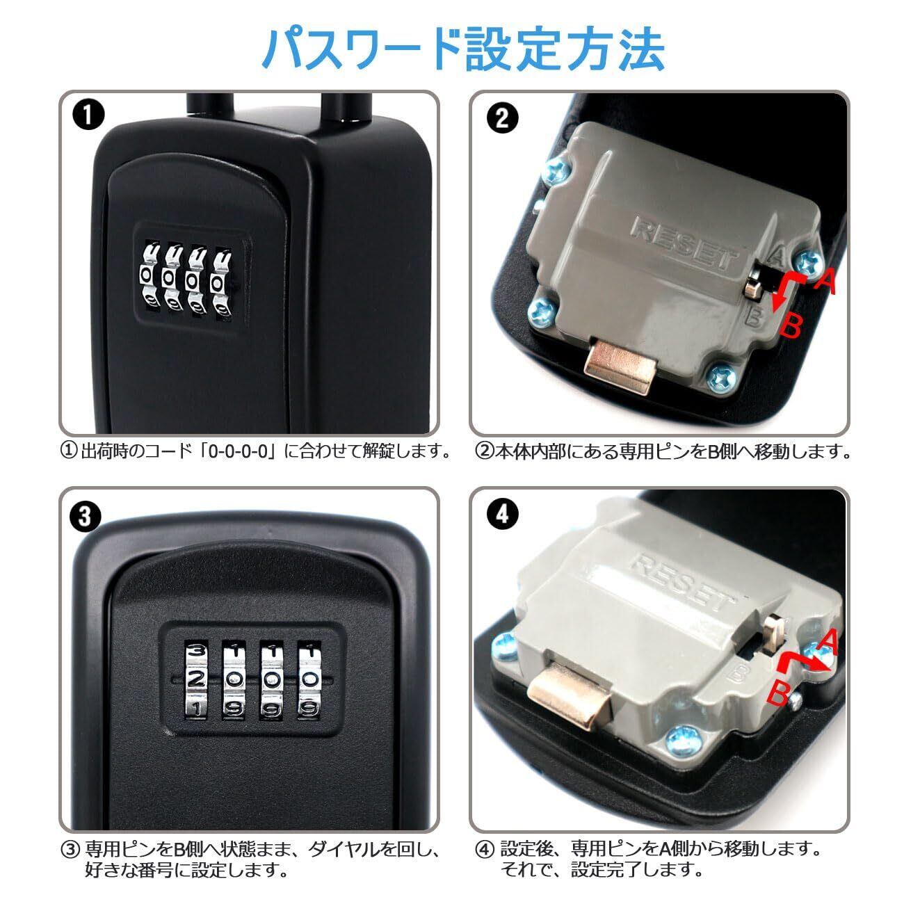 ** 操作簡単:キー暗証番号ボックスは可変式で好きな4桁の番号に設定できます。具体的な操作方法は、付属している日本語の説明書に書いてあります。