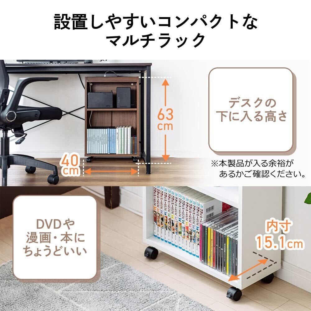 イーサプライ マルチラック 本棚 スリム キャスター付き 幅40×奥行17×高さ63cm(外寸) ベッド デスク下 ルーター 収納ボックス 配線 木製 ホワイト EEX-WG06WH