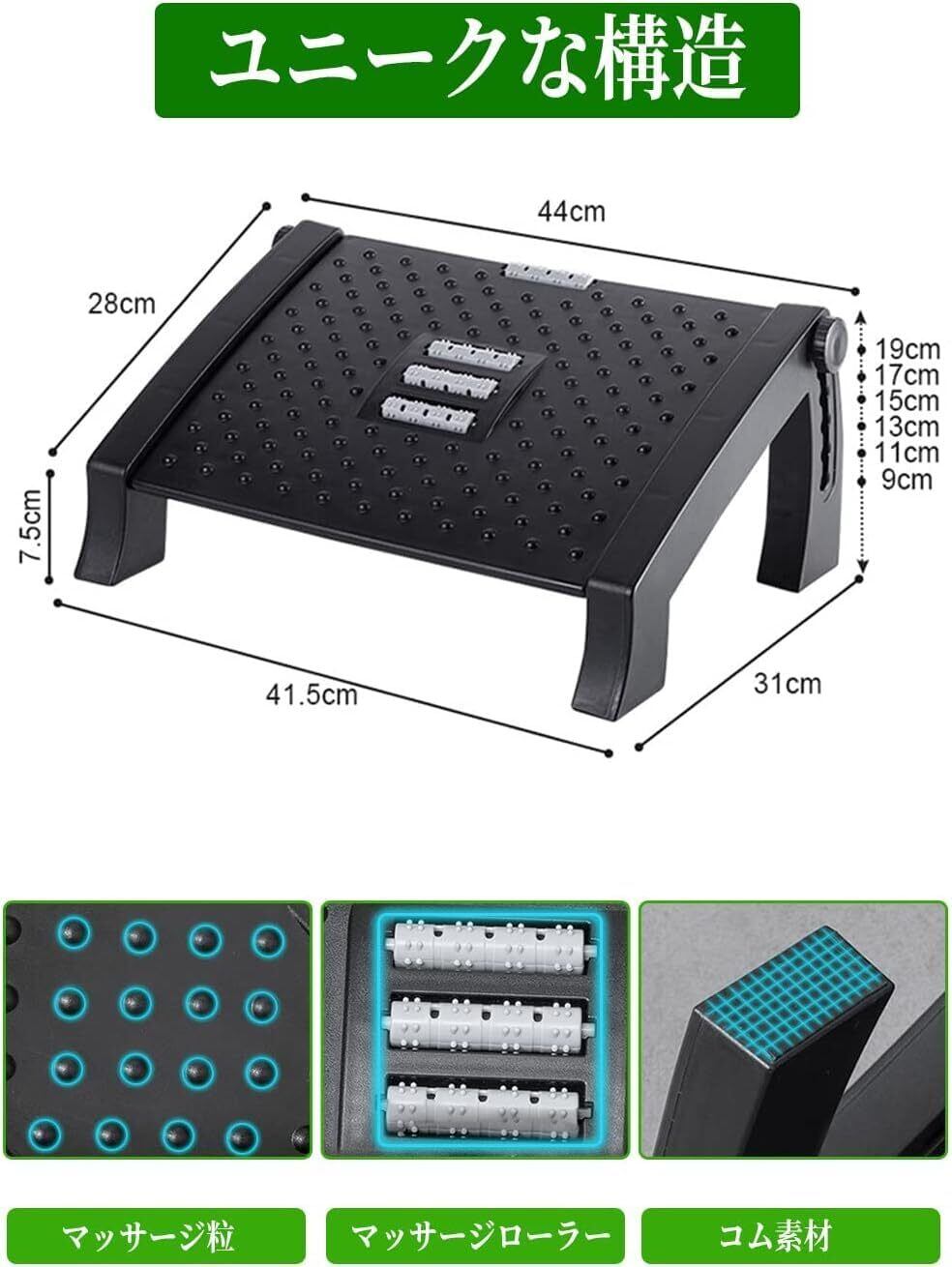 フットレスト 調節可能な 足置き 角度・高さ調整可能 滑り止めラバー付き (黒)