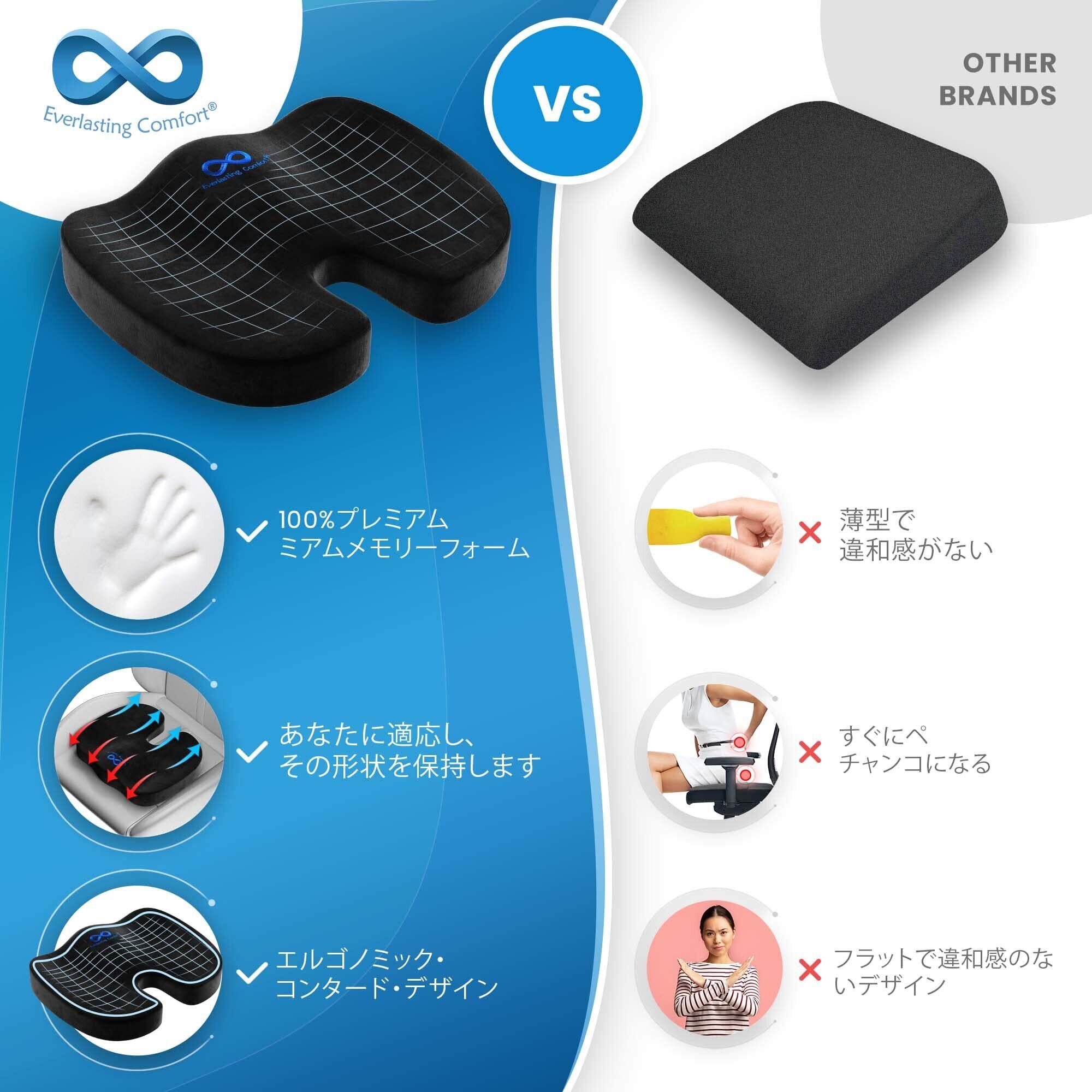 オフィスチェア用シートクッション:Everlasting Comfortのシートクッションは、長時間のデスクワークに最適です。高品質メモリーフォームが体の形にフィットし、オフィスチェアや車 シートクッションとしても一日中快適な座り心地を提供します。