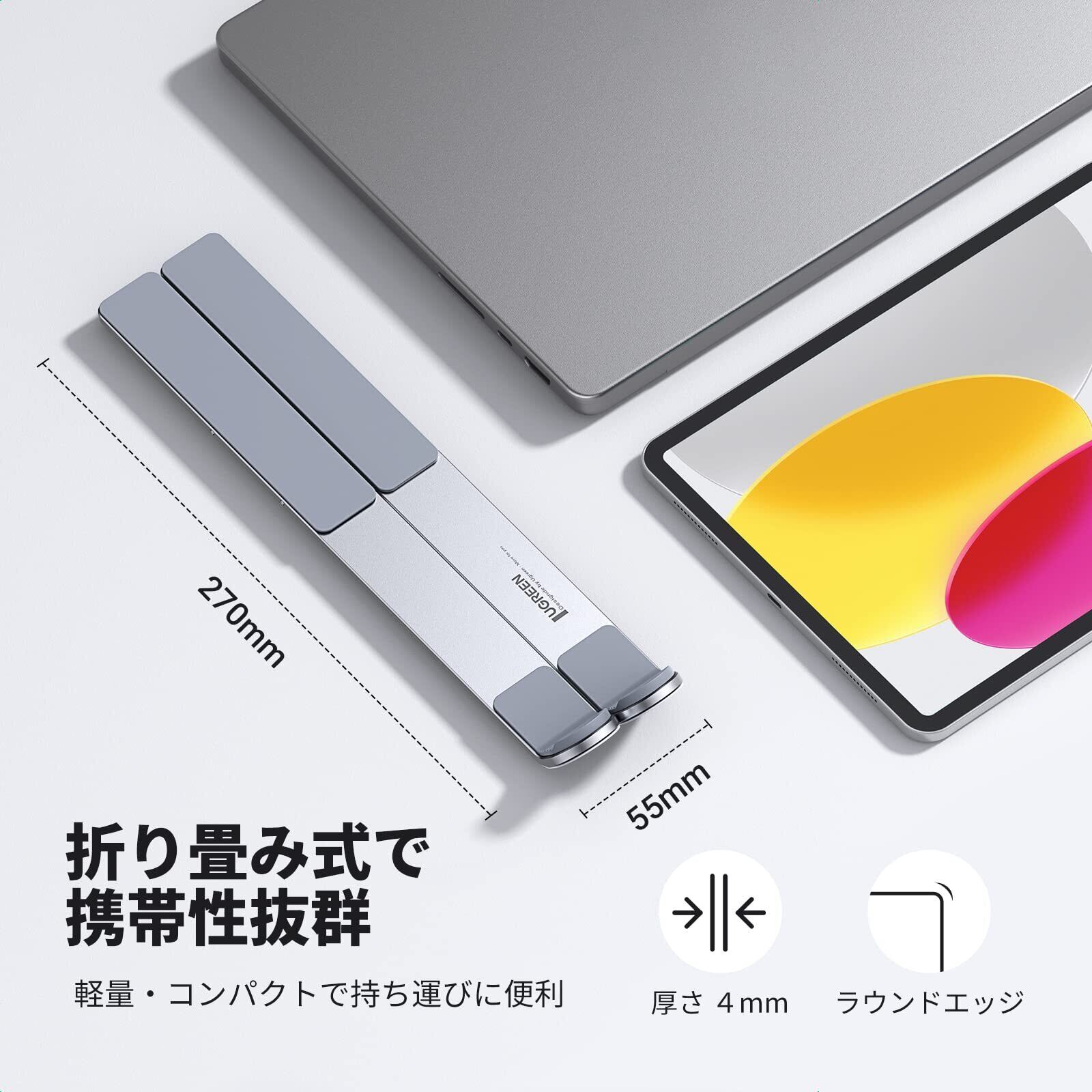 UGREEN ノートパソコンスタンド PC 折りたたみ式 パソコンスタンド コンパクト 持ち運びやすい ラップトップ 7.9-17.3インチまでのノートPC タブレットに対応 アルミ合金素材 5段階角度調整可能 滑り止めシリコン 収納ケース付き