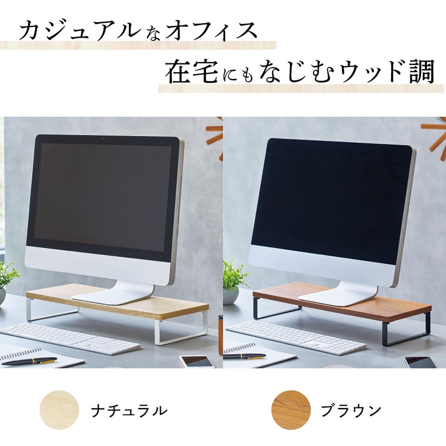 ✨幅50cm、奥行20cmのスリムな設計が特徴で、限られたデスクスペースを有効活用できます。モニターを高く設置することで、デスク上のスペースを広々と使え、キーボードやその他の周辺機器をスッキリ整理できます。