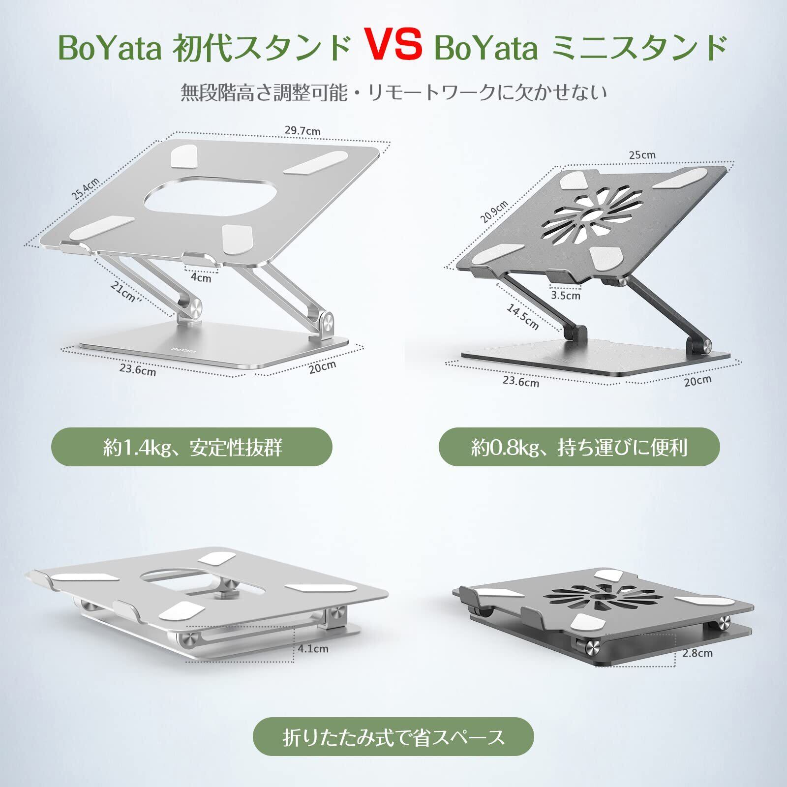 ✨【スタイリッシュで実用的】BoYataのノートパソコンスタンドは、軽量設計で持ち運びにも便利です。グレーのシンプルなデザインが、どんなインテリアにもフィットし、美しいデスク環境を演出します。