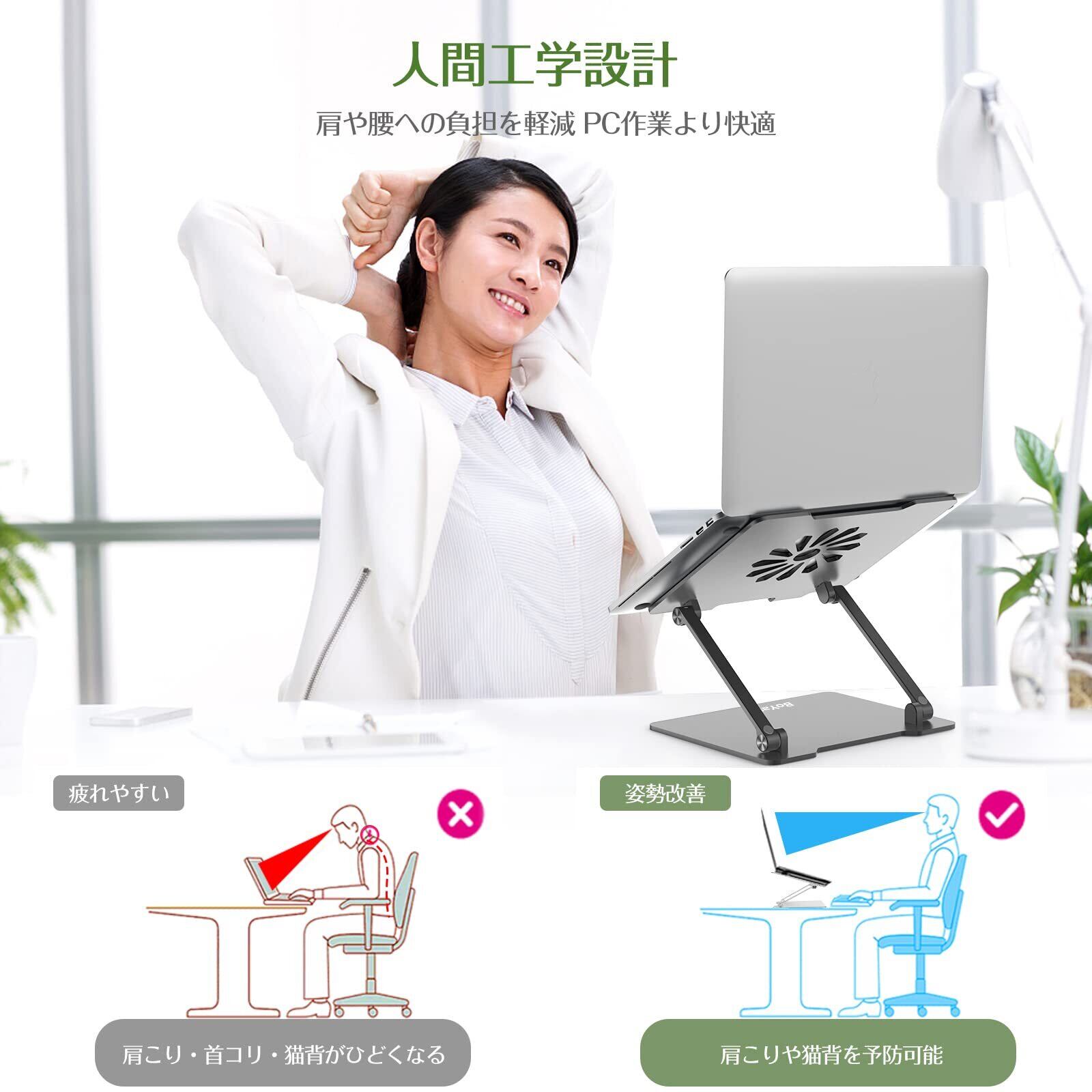 ✨BoYataのノートパソコンスタンドを使うことで、作業時の姿勢が改善され、デスク周りが整理整頓されます。快適な作業環境を整え、効率を向上させましょう!