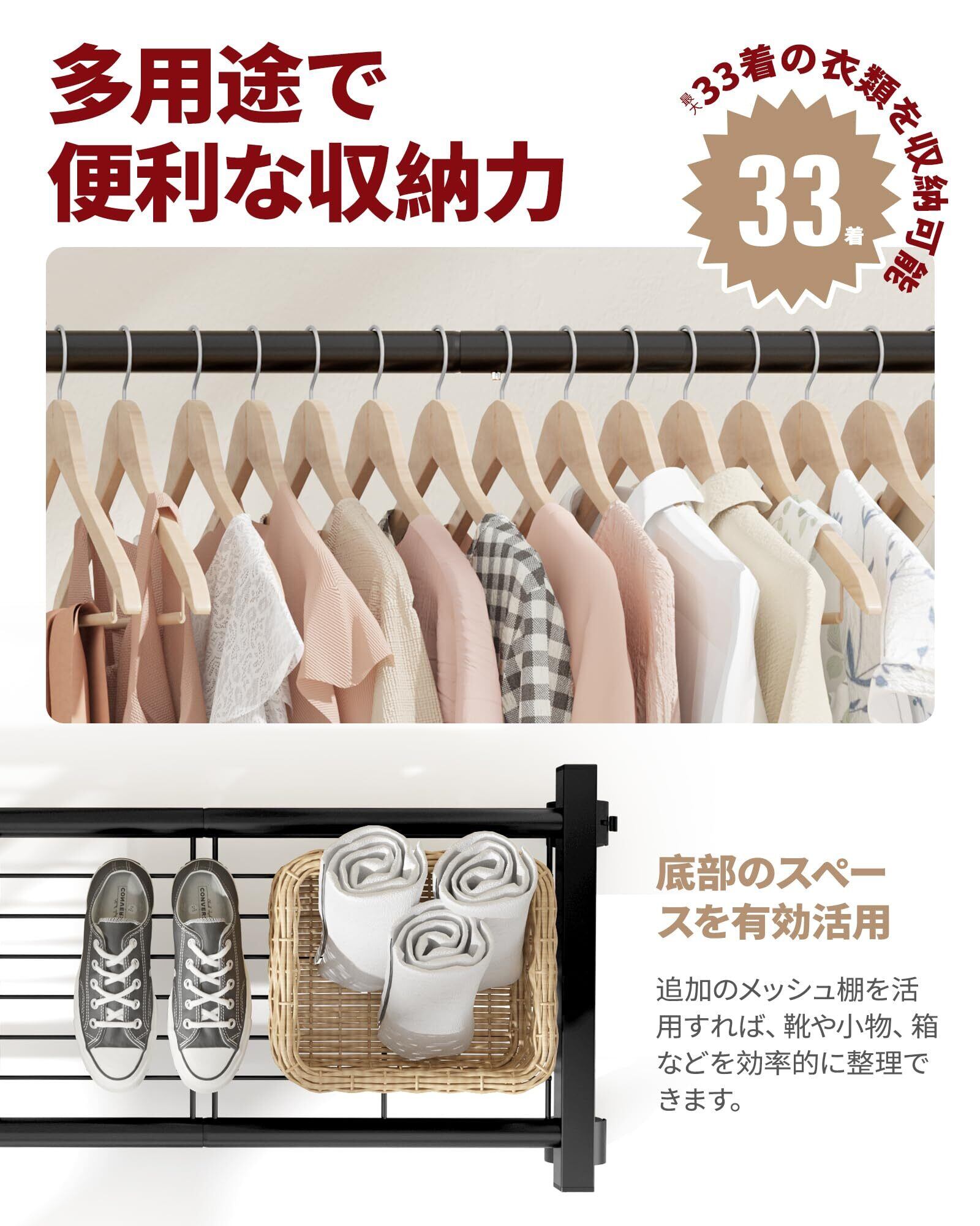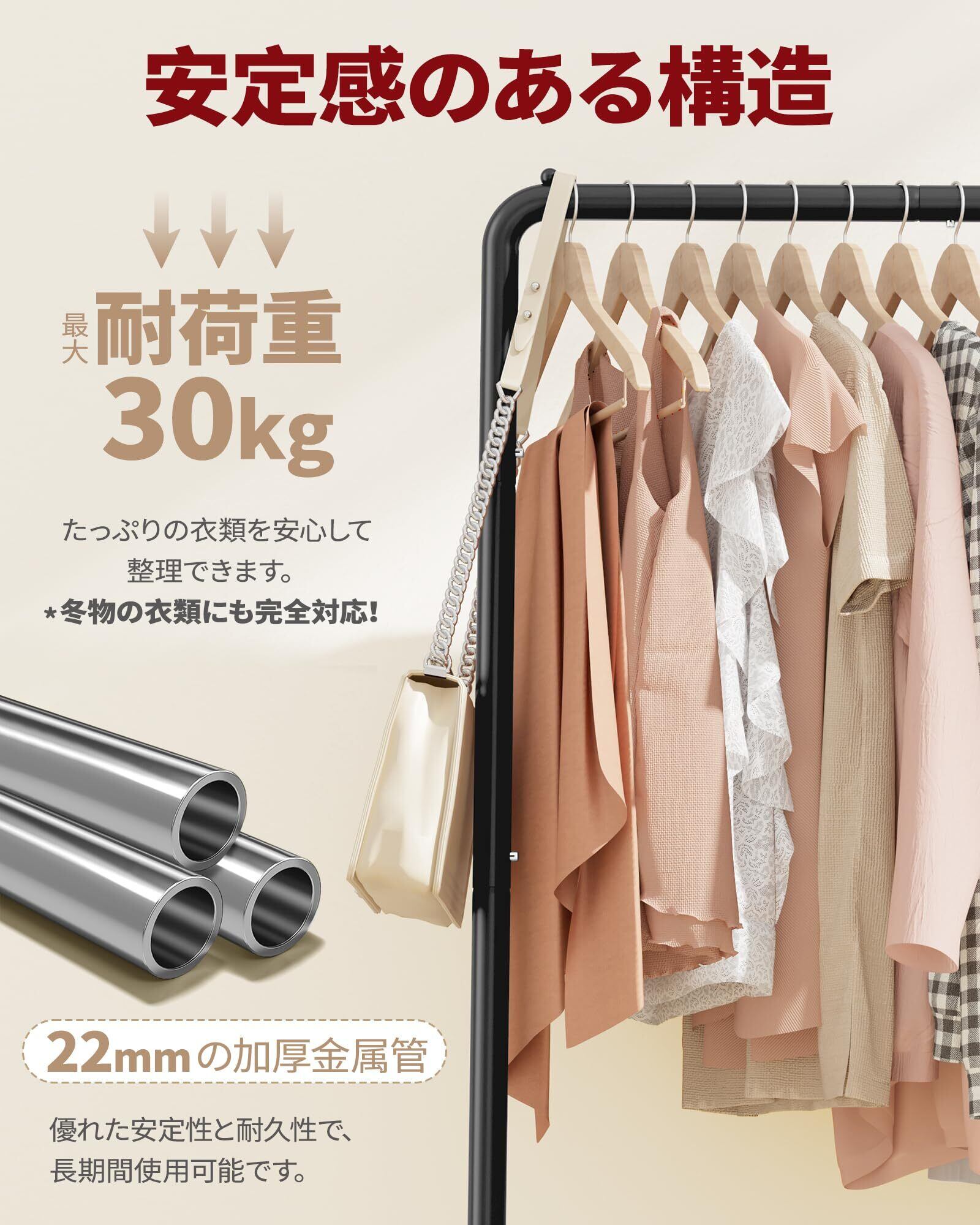 ✨ダブルタイプのハンガー棒を採用し、一度に多くの衣類をかけることができます。コート、ドレス、セーターなど、さまざまなアイテムを掛けられて、衣類の収納力が大幅に向上します。