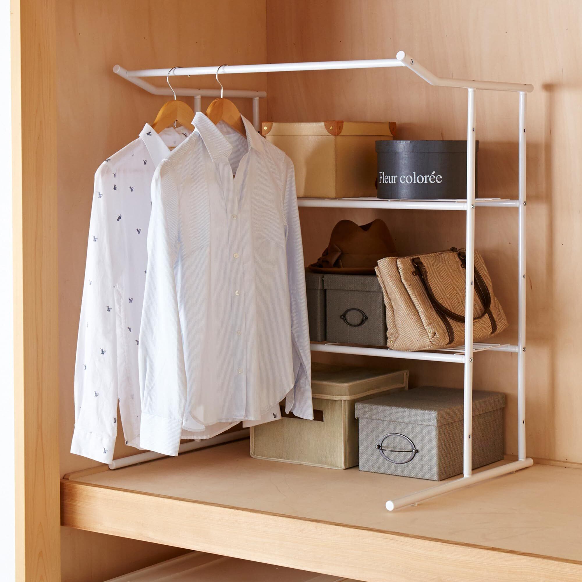 ハンガーパイプと2段の収納棚で衣類も小物もたっぷり収納。押入れの上段を有効活用できます。