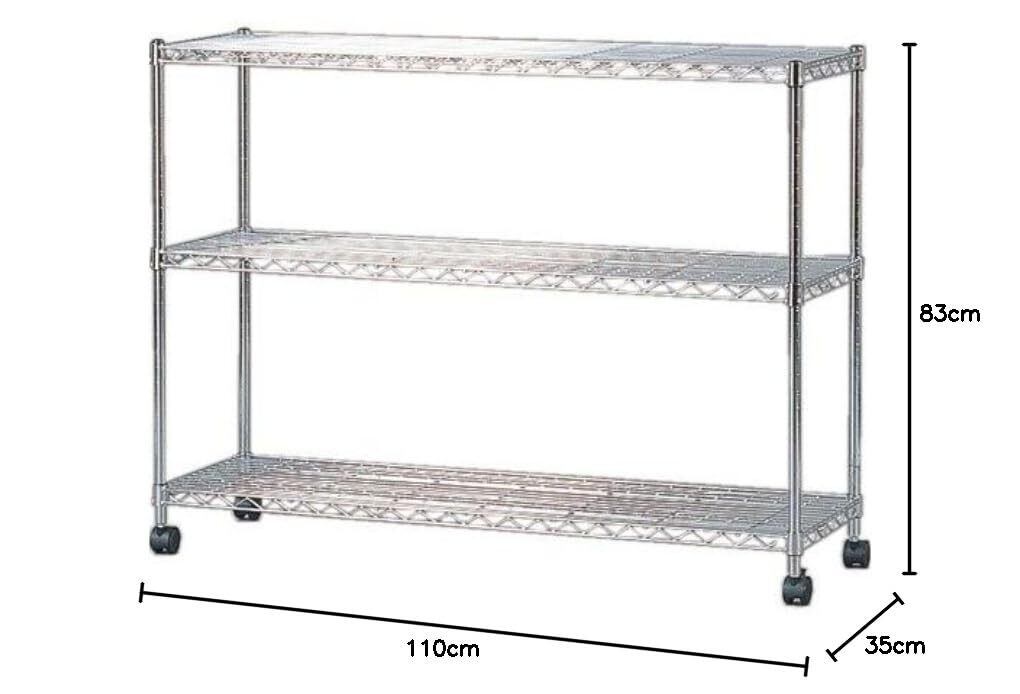 ●材質/棚板・ポール:スチール(クロームメッキ)、固定部品:ABS樹脂、キャスター:ナイロン樹脂