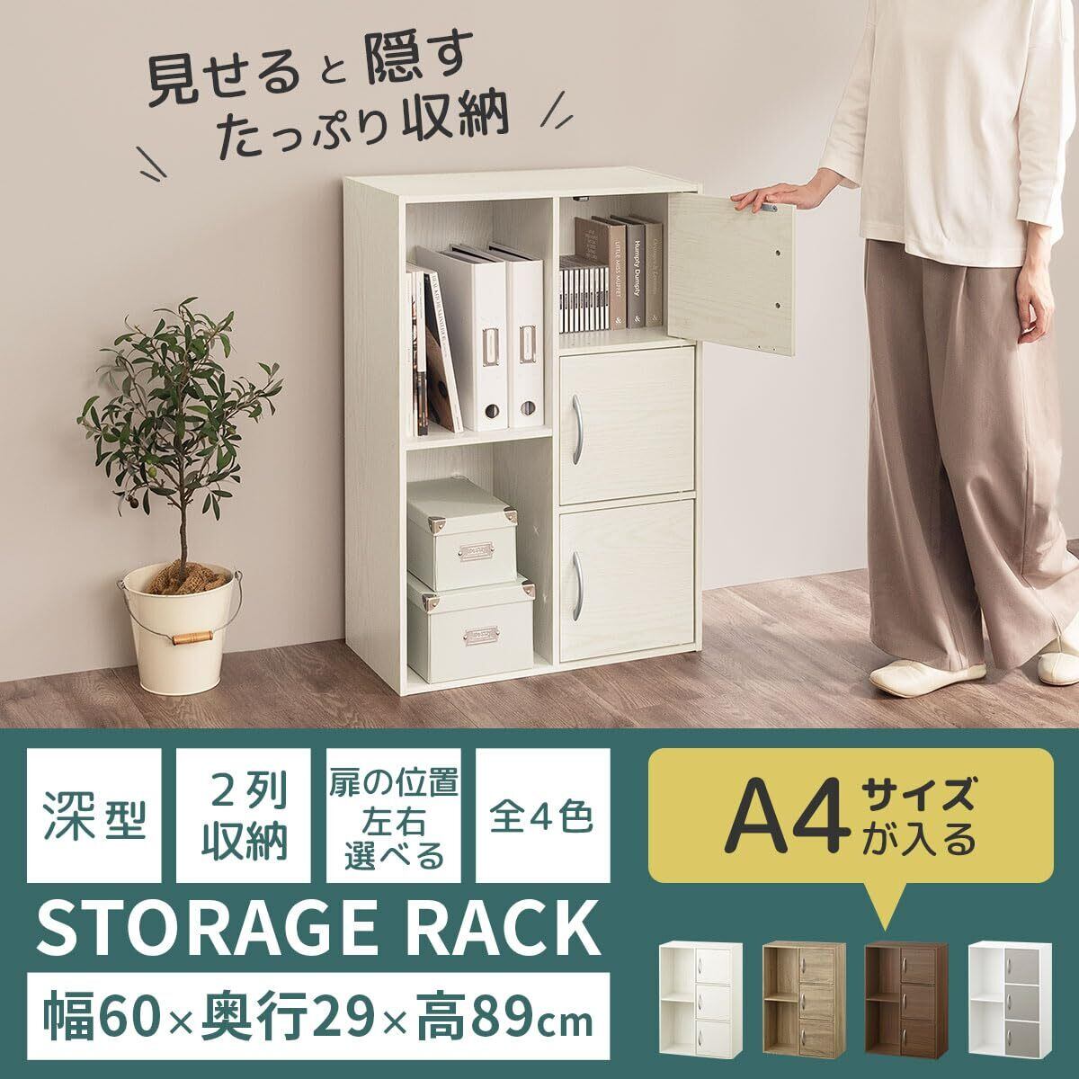 \【◆ぼん家具】【カラーボックス】【幅60×奥行29.1×高さ89.2cm】【扉付き】【ホワイト】/お部屋をすっきり整える、スタイリッシュで機能的な収納アイテム!