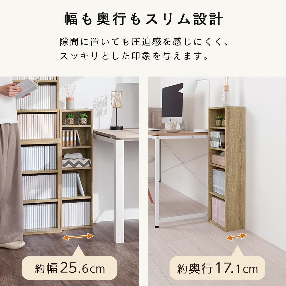 ぼん家具 【完成品】 カラーボックス 5段 スリム 可動棚 幅25.6×奥行17.1×高さ90.2cm 収納ボックス すき間収納 木目調 オーク