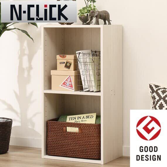 ニトリ(NITORI) 簡単組立て Nクリック ボックス レギュラー 2段 ホワイトウォッシュ 幅42.5×奥行29.8×高さ83.7cm 8791502