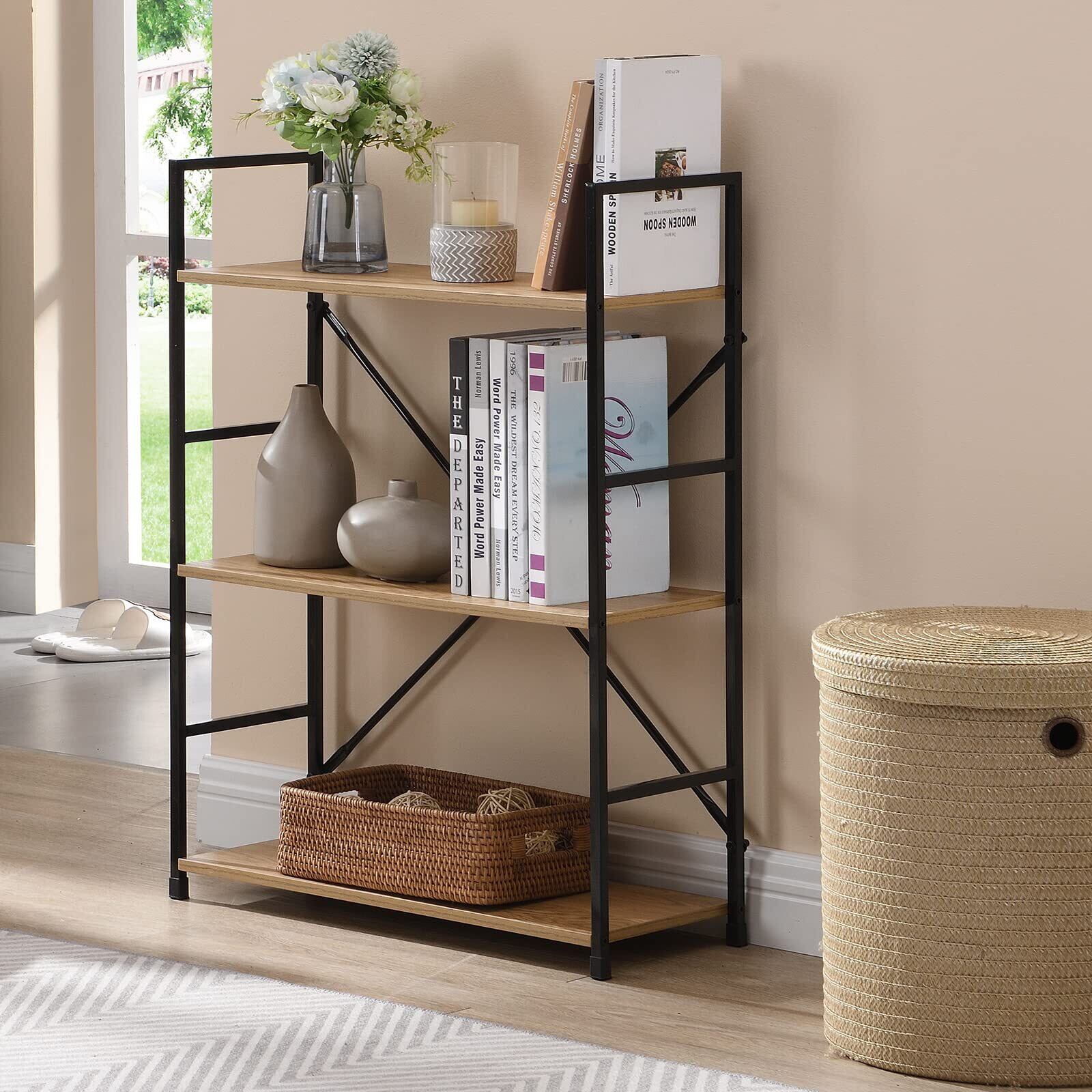 【スリム収納&おしゃれ】3段式装飾棚、シンプル&スリムな構造、ファッション、実用的です。本棚、収納ラック、植物のスタンドに十分なスペースを提供します。オフィスの棚、居間、キッチン、リビング、書斎、寝室などに適しています。