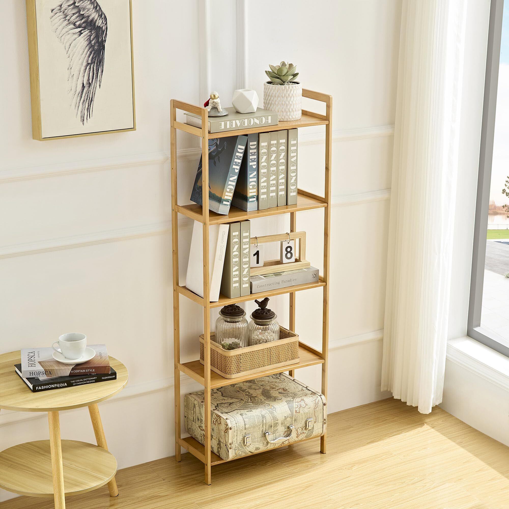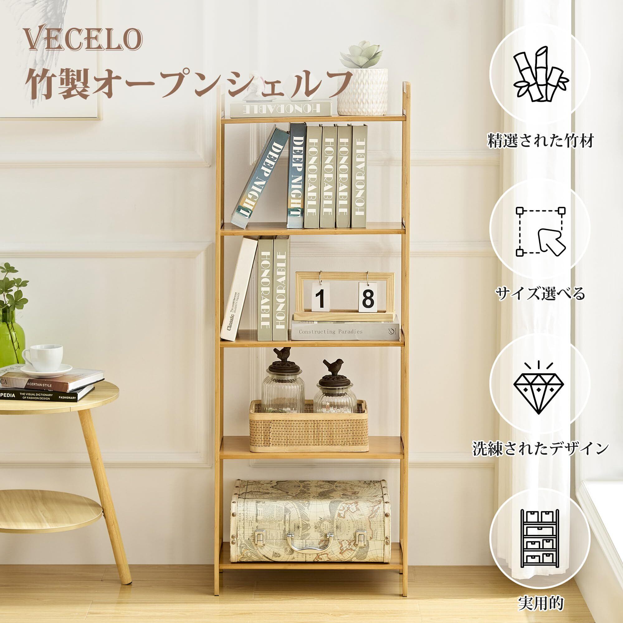 VECELO オープンシェルフ 収納ラック 竹製 収納棚 幅48.5×奥行24×高さ128cm オーク 多用途 省スペース すき間 飾り棚 組立簡単