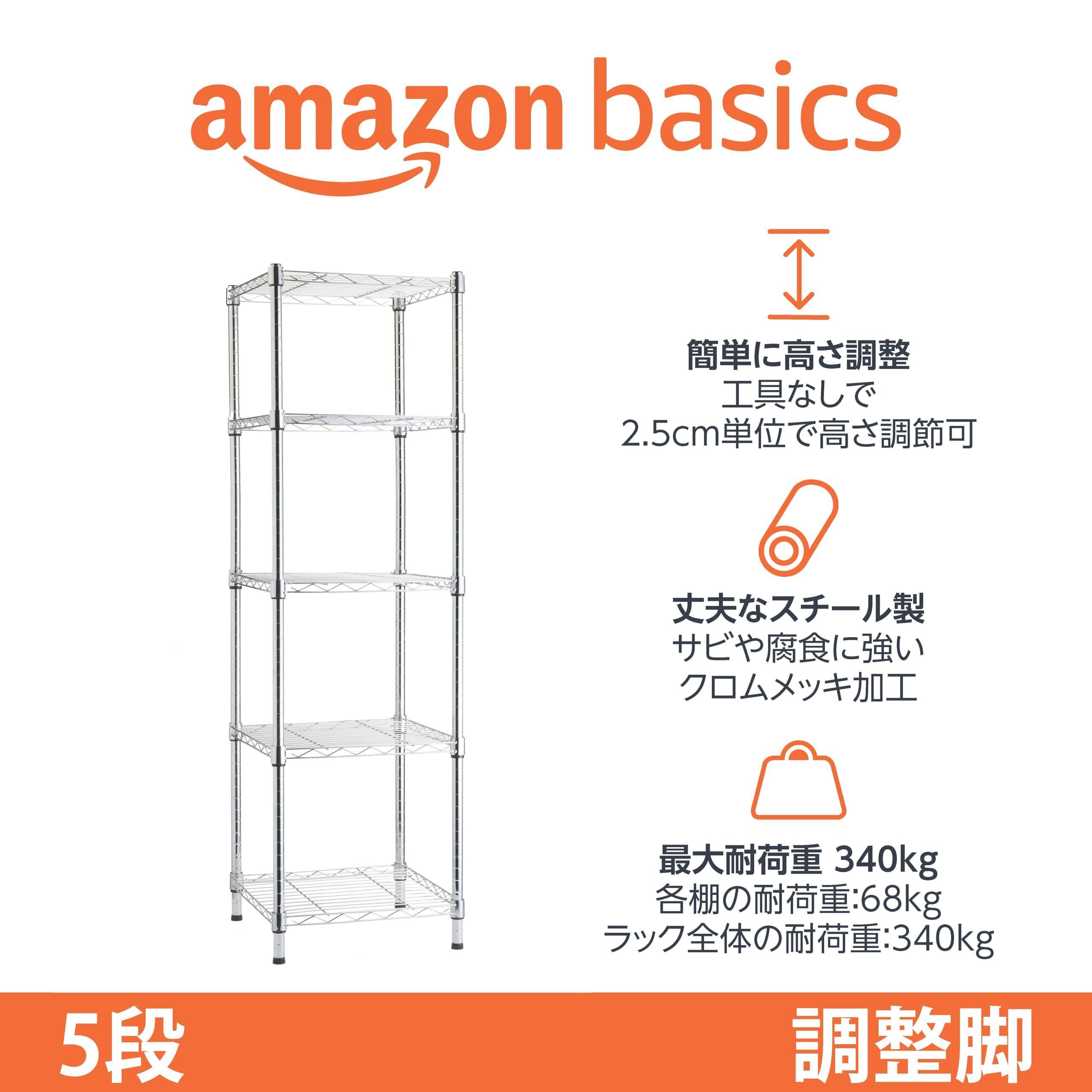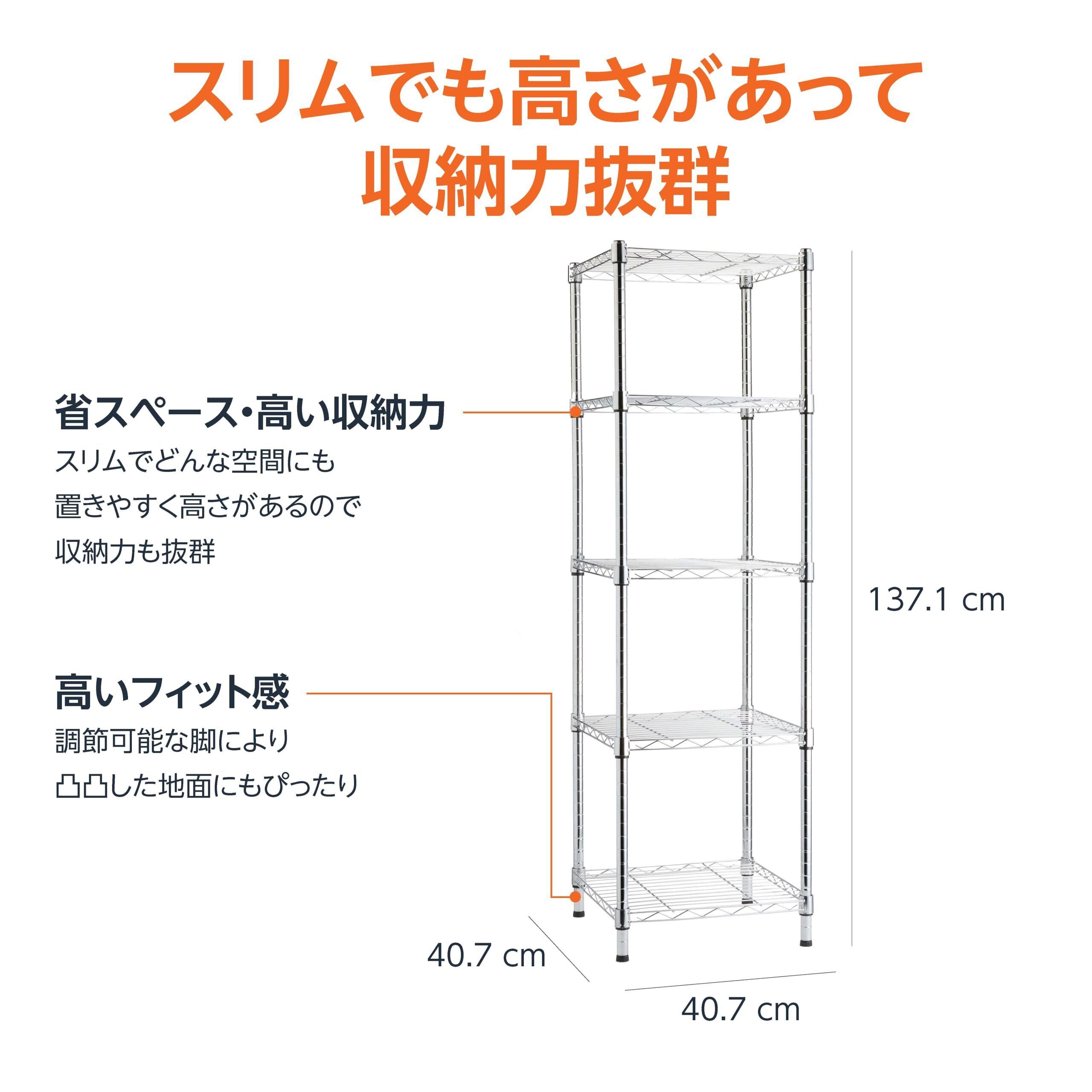 ベーシック 5段スチールラック 棚 メタルラック キッチンラック 耐荷重340kg 幅41cm x 奥行41cm x 高さ137cm クロム
