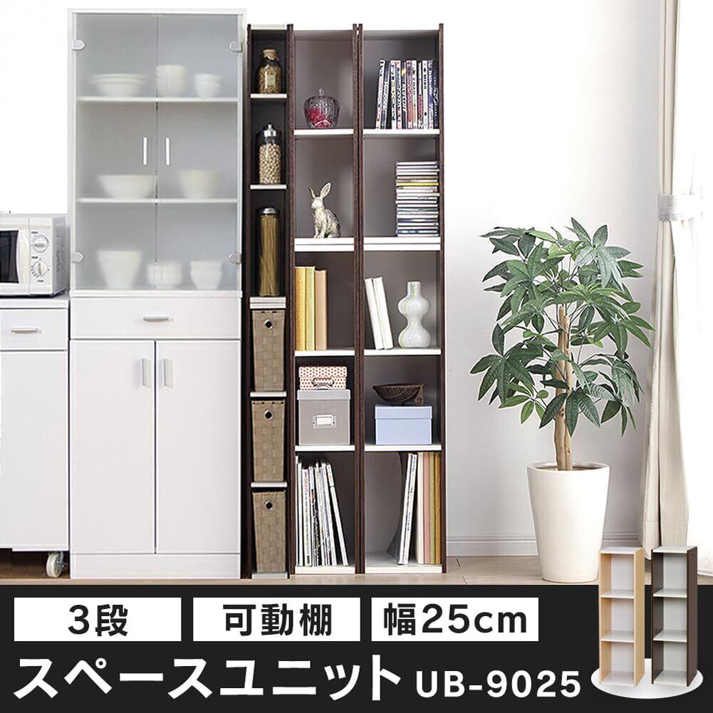 アイリスオーヤマ ≪隙間を有効活用!幅約25cm≫スペースユニット UB-9025 オフホワイト/ウォールナットブラウン