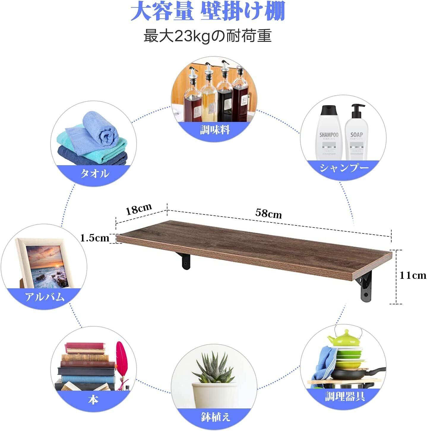 ✨【スタイリッシュで機能的】ウォールシェルフは、幅58cm×奥行18cmのコンパクトなデザインで、玄関、キッチン、洗面所、寝室などあらゆる場所で活躍します。おしゃれな木製の仕上げが、どんなインテリアにもぴったりです。