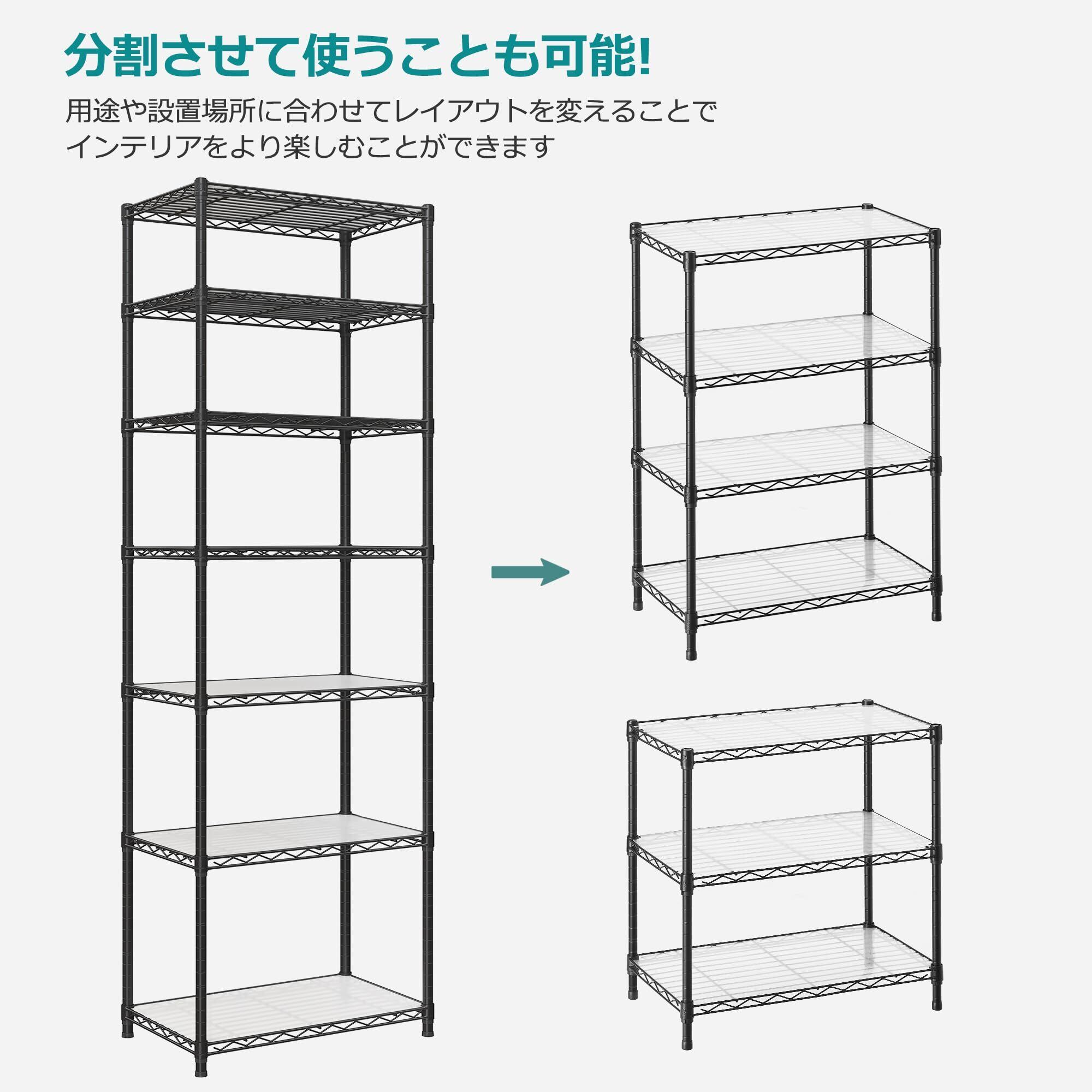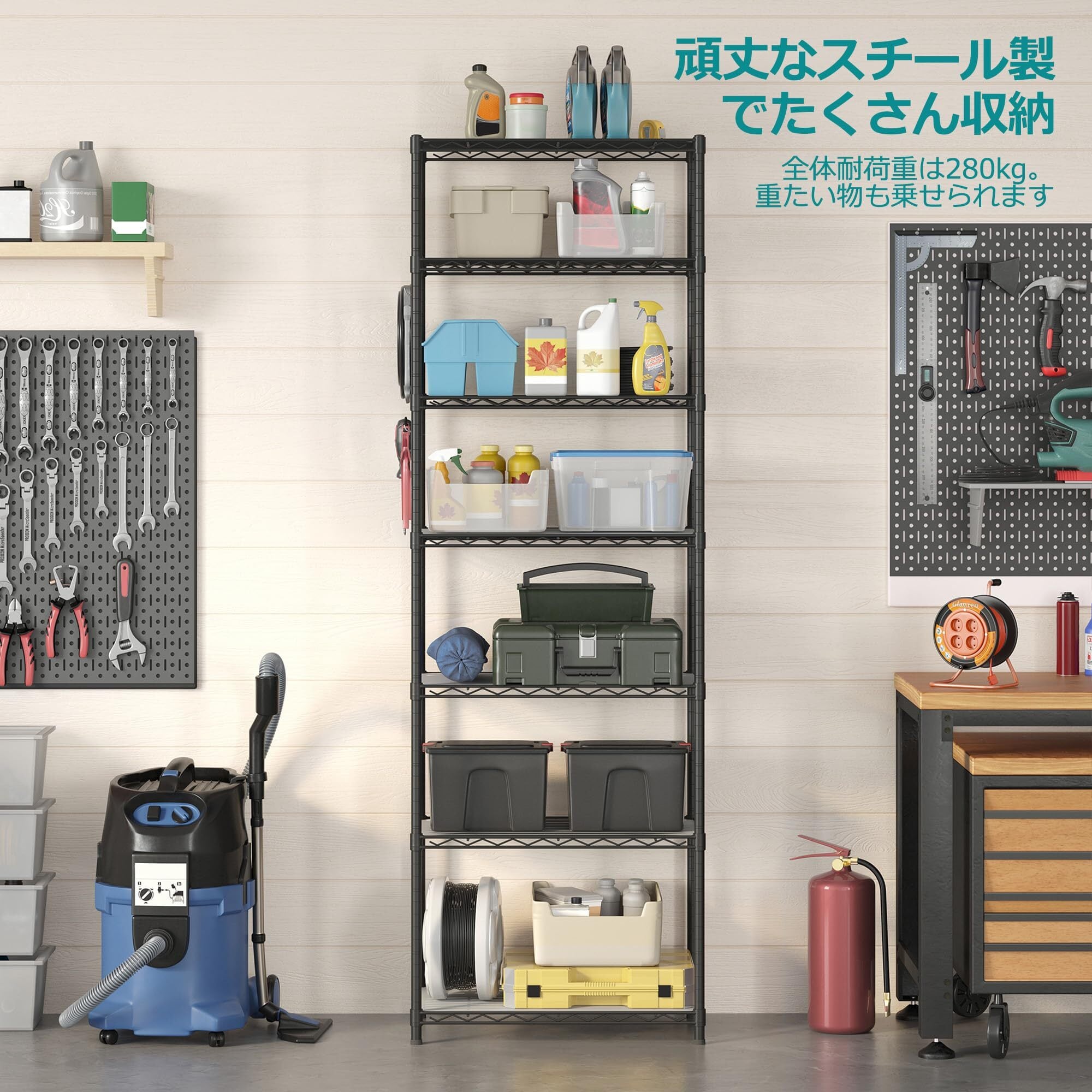 SONGMICSの7段スリムスチールラックは、その抜群の収納力とおしゃれなデザインが魅力です。どんな空間にもフィットし、機能的でありながらスタイリッシュな印象を与えます。