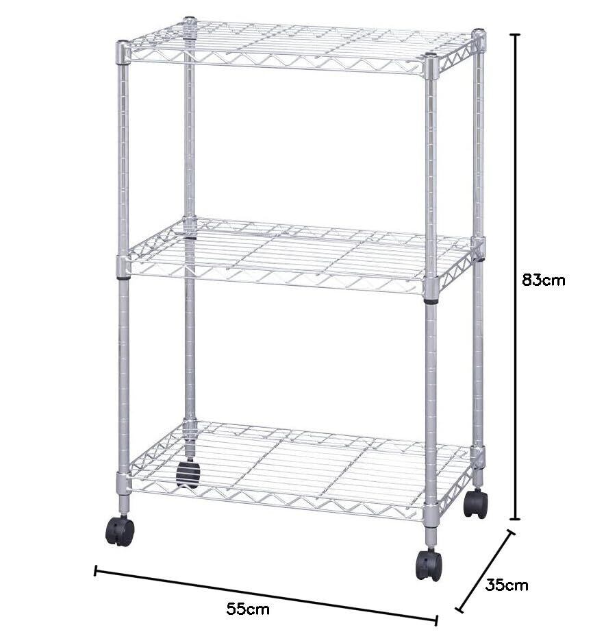 アイリスオーヤマ ラック メタル 3段 キャスター付き 防サビ加工 ポール径19mm 幅55×奥行35×高さ83cm シェルフ スチール サビに強い 銀 SEM-5508