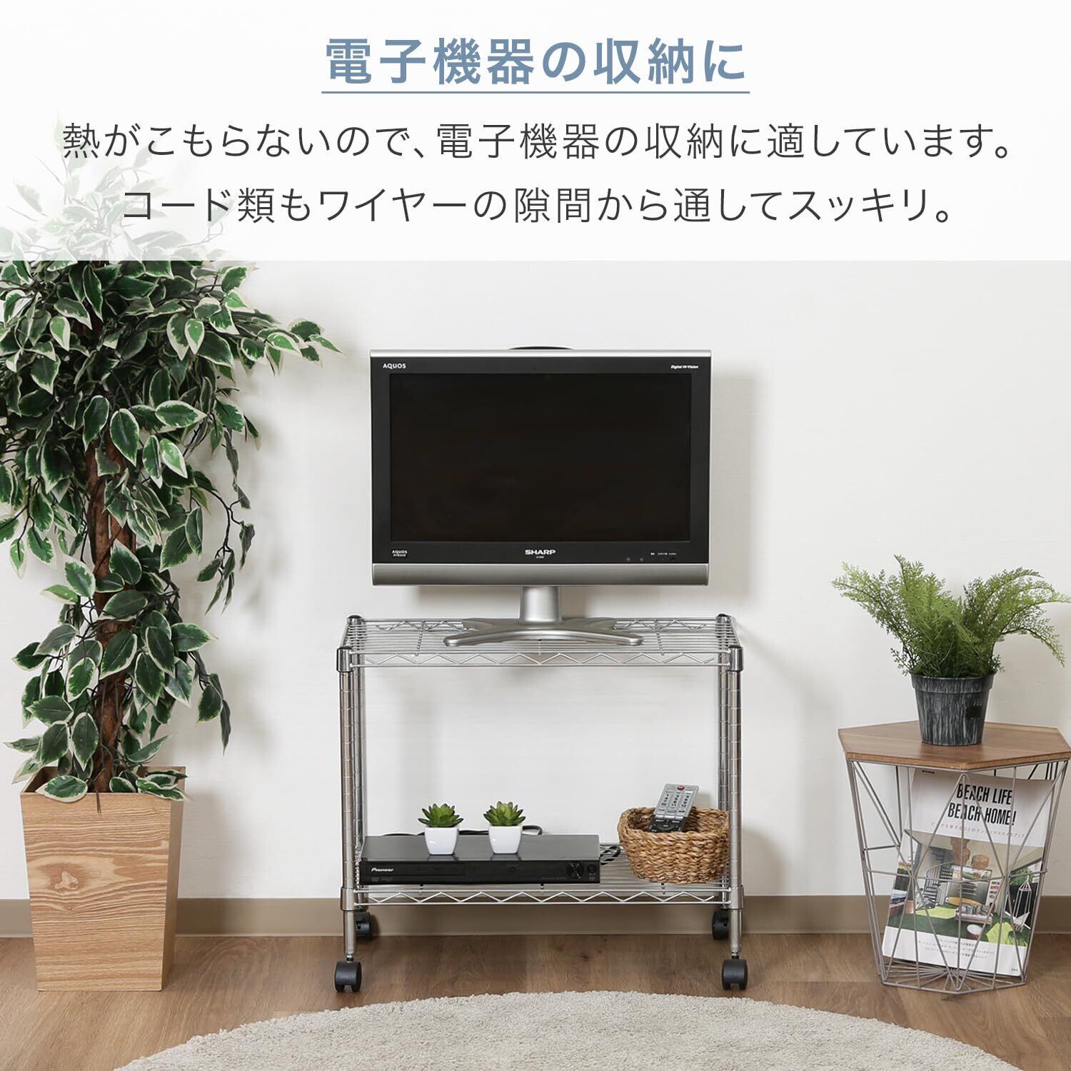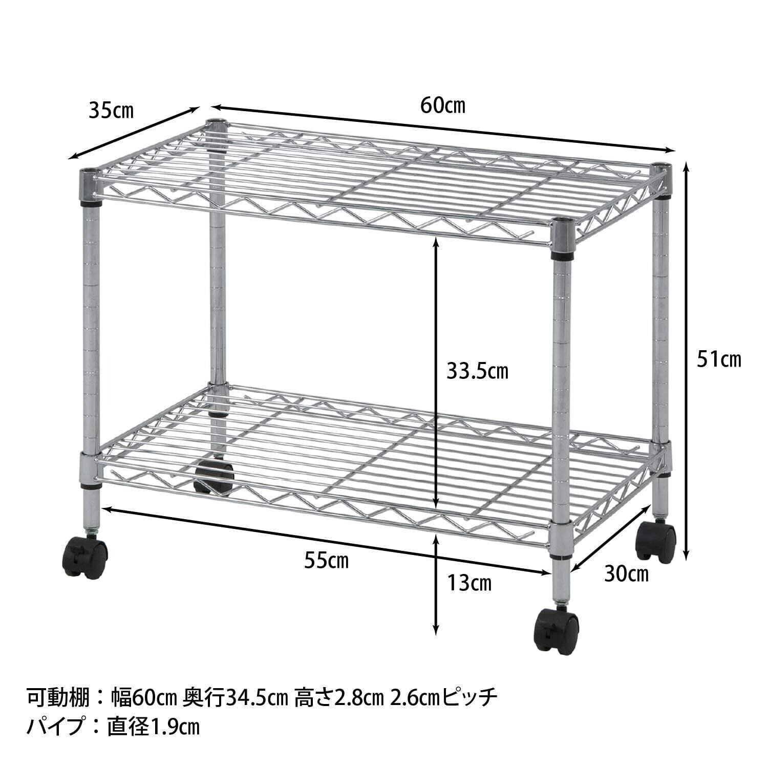 不二貿易(Fujiboeki) テレビ台 ローボード 2段 幅60×奥行35×高さ51m シルバー キャスター付き メタルラック 組立商品 91783