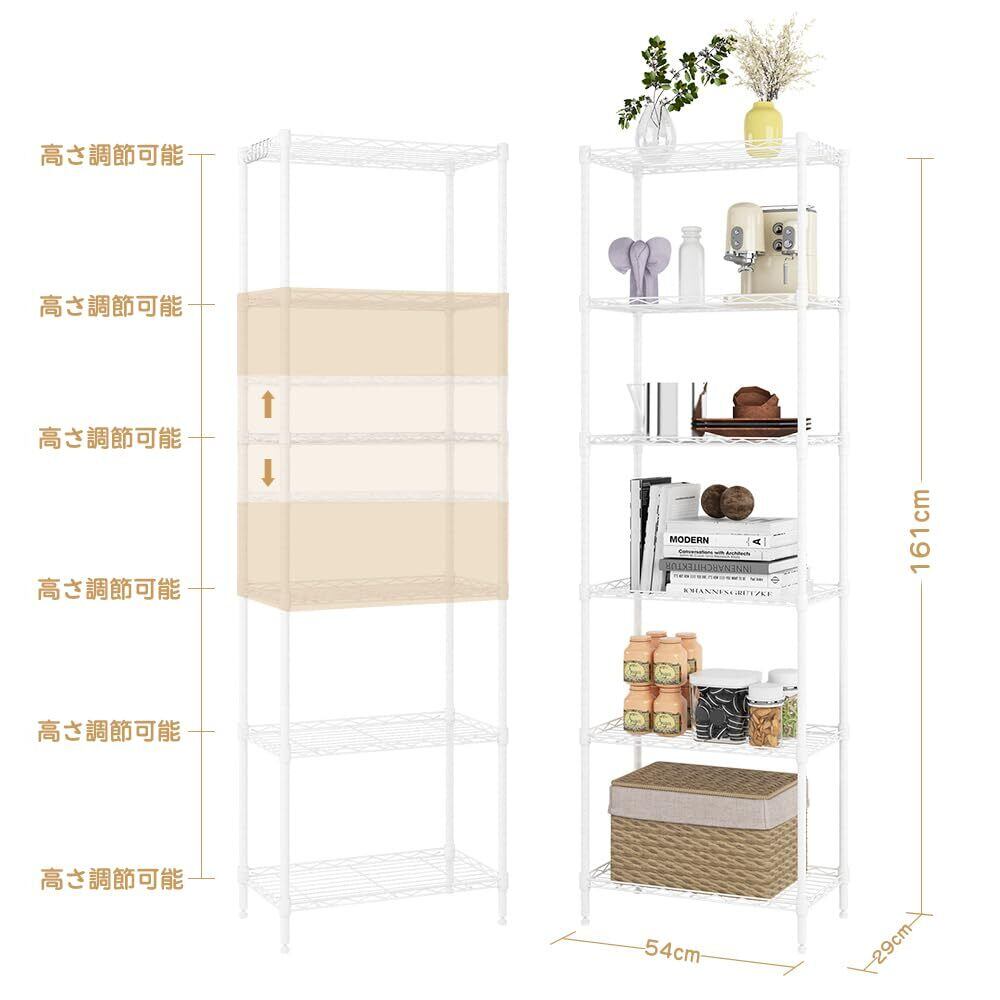 NATRKE メタルラック 6段 ホワイト レベル調整脚付き スチールラック スチールシェルフ ワイヤーラック 置物架 収納棚 大容量 防錆 傷つきにくい おしゃれ 省スペース 耐荷重240kg キッチン リビング ランドリー 玄関 オフィス 高さ調整可能 軽量 頑丈 簡単組立 幅54×奥行29×高さ165.5cm