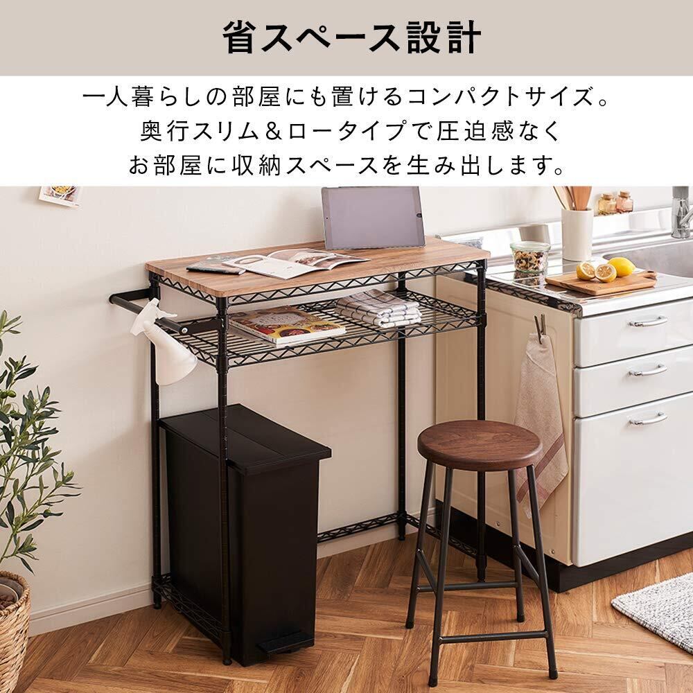 作業台にもデスクにもなるスクエア型の天板は、まな板やノートを広げても充分なサイズです。