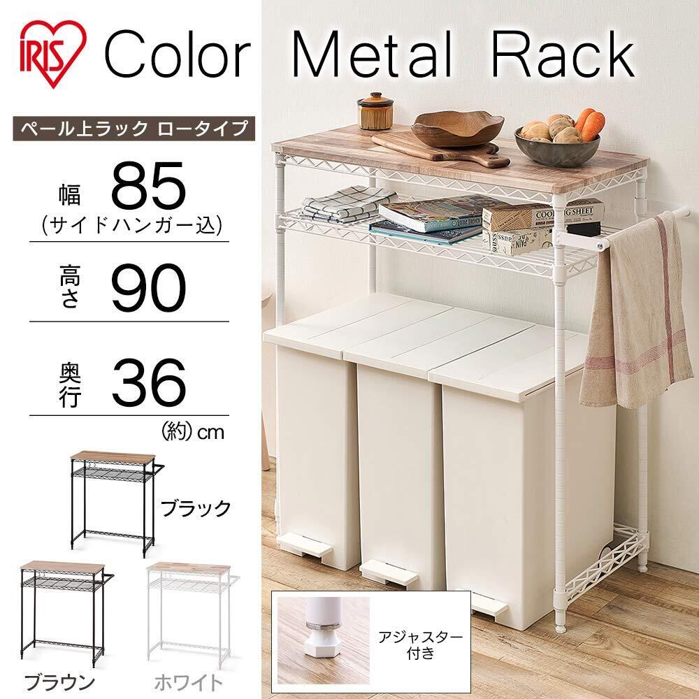 アイリスオーヤマ レンジ台 キッチンラック 幅75×奥行36×高さ90cm ロータイプ 耐荷重80kg メタル ゴミ箱上 組立品 スチール製 CMM-PRL7590 ホワイト