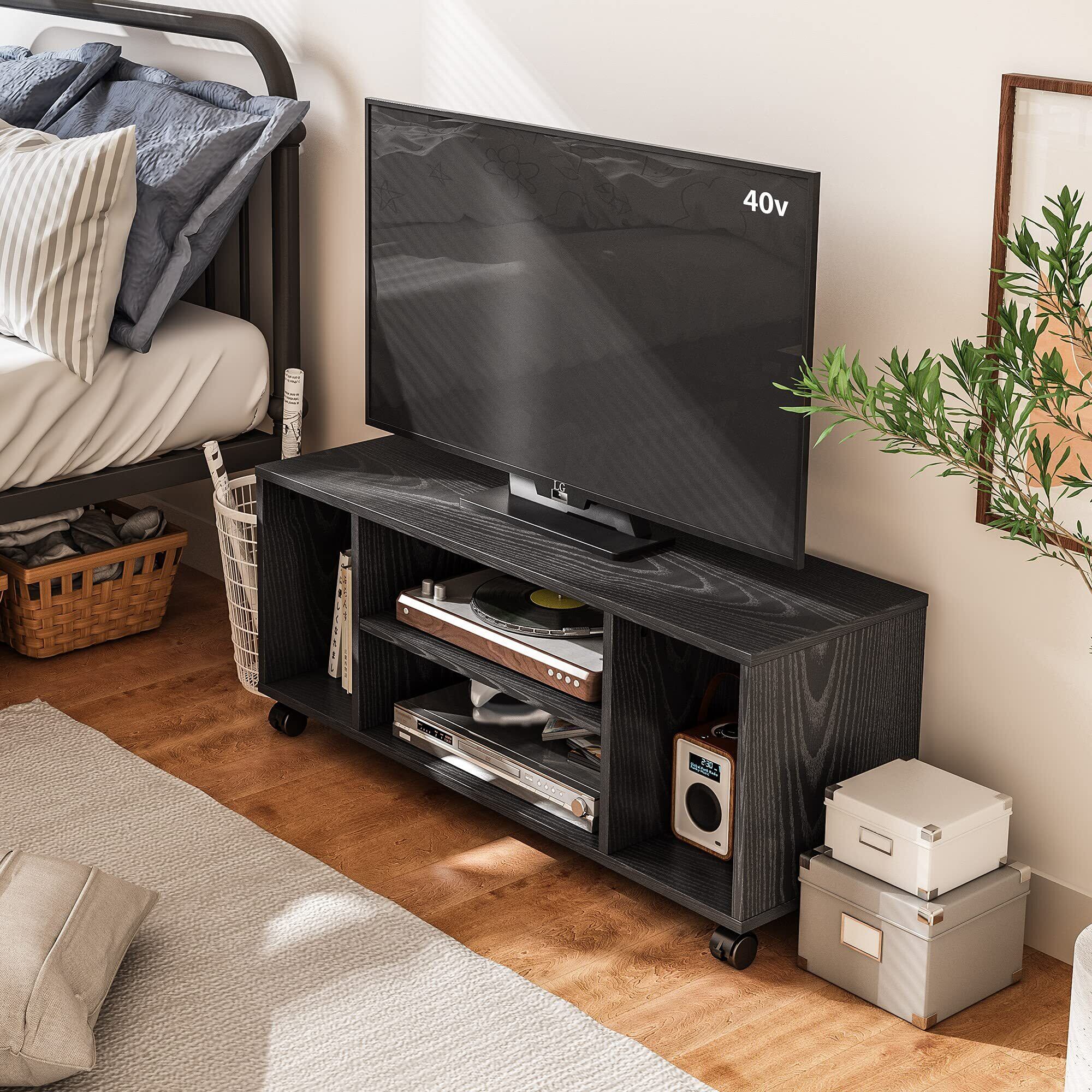 【移動式tv台】5つのキャスター付きで移動が簡単で、掃除も便利です。前側の2つのキャスターにはロック機能があり、固定する際に使用できます。キャスターが嫌いな場合は、キャスターを取り外して使用することもできます。