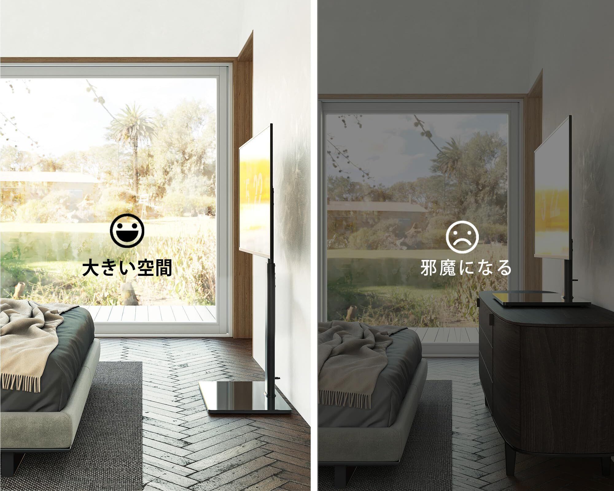 ✨スタンドの高さは調節可能で、あなたの視聴スタイルに合わせて設定できます。ソファに座っている時や、立っている時でも快適にテレビを楽しむことができます。