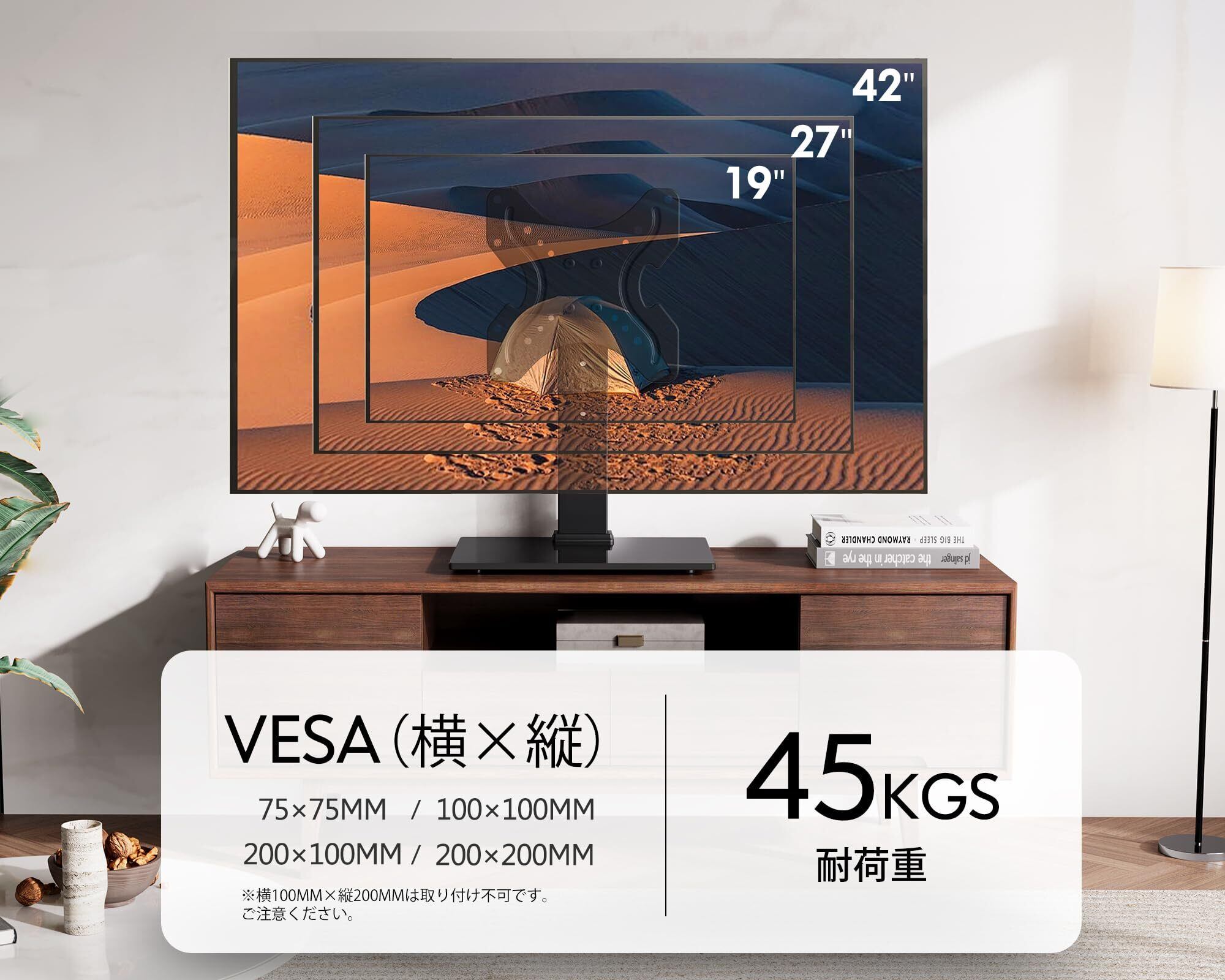 ✨【多様なテレビサイズに対応】このテレビスタンドは、19インチから42インチのテレビに対応し、スタイリッシュなブラックカラーがどんなインテリアにもスムーズに馴染みます。最適な視聴環境を提供し、あなたのお部屋をより魅力的に演出します。