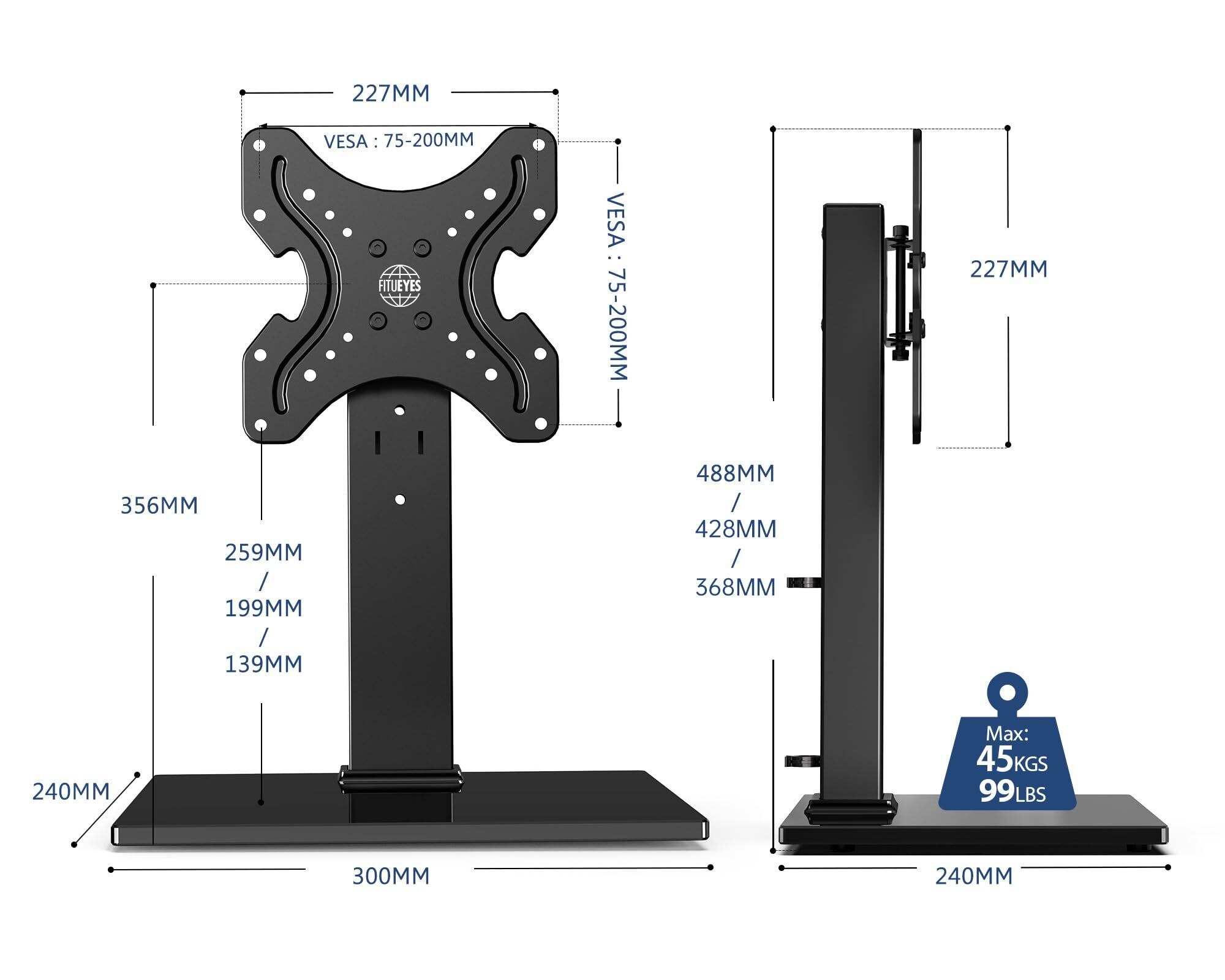 FITUEYES ユニバーサルテレビスタンド 19~42インチ対応 卓上用 高さ調節可能 ラック回転可能 ブラック