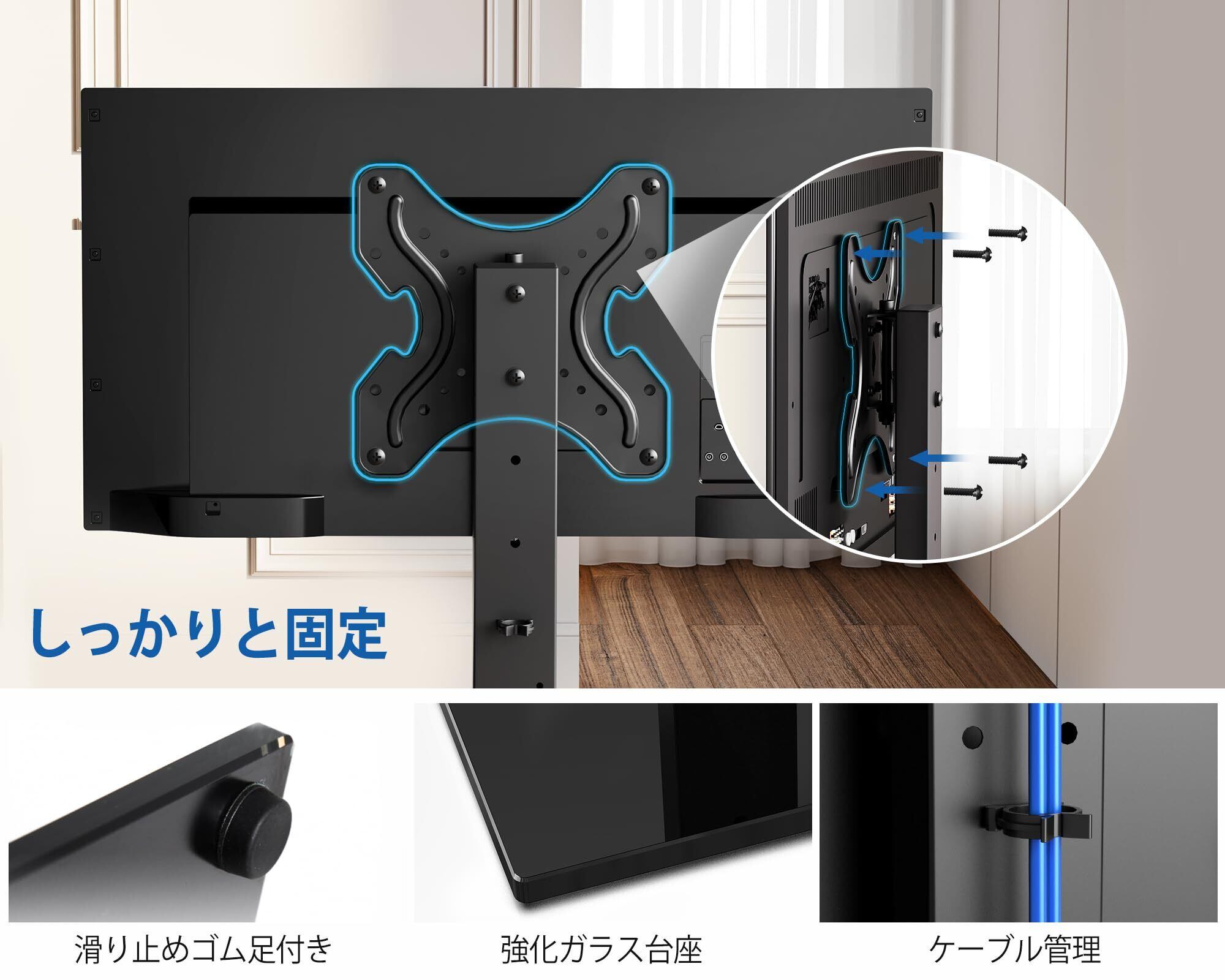 ✨耐荷重は30kgで、安心して大型テレビをサポートできる設計です。安定した基盤が、あなたのテレビを安全に支えます。
