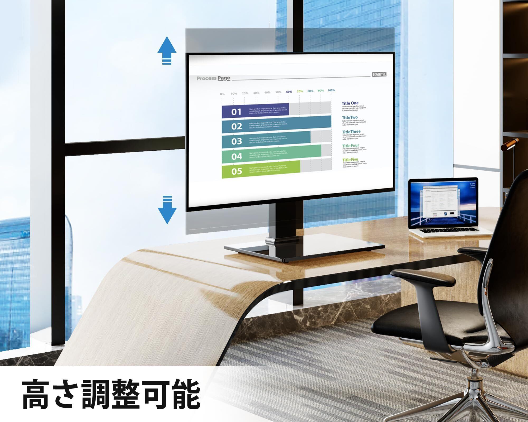 ✨スタンドの高さは簡単に調整でき、あなたの視聴スタイルに合わせて設定が可能です。立っている時やソファに座っている時でも、快適な姿勢でテレビを楽しむことができます。