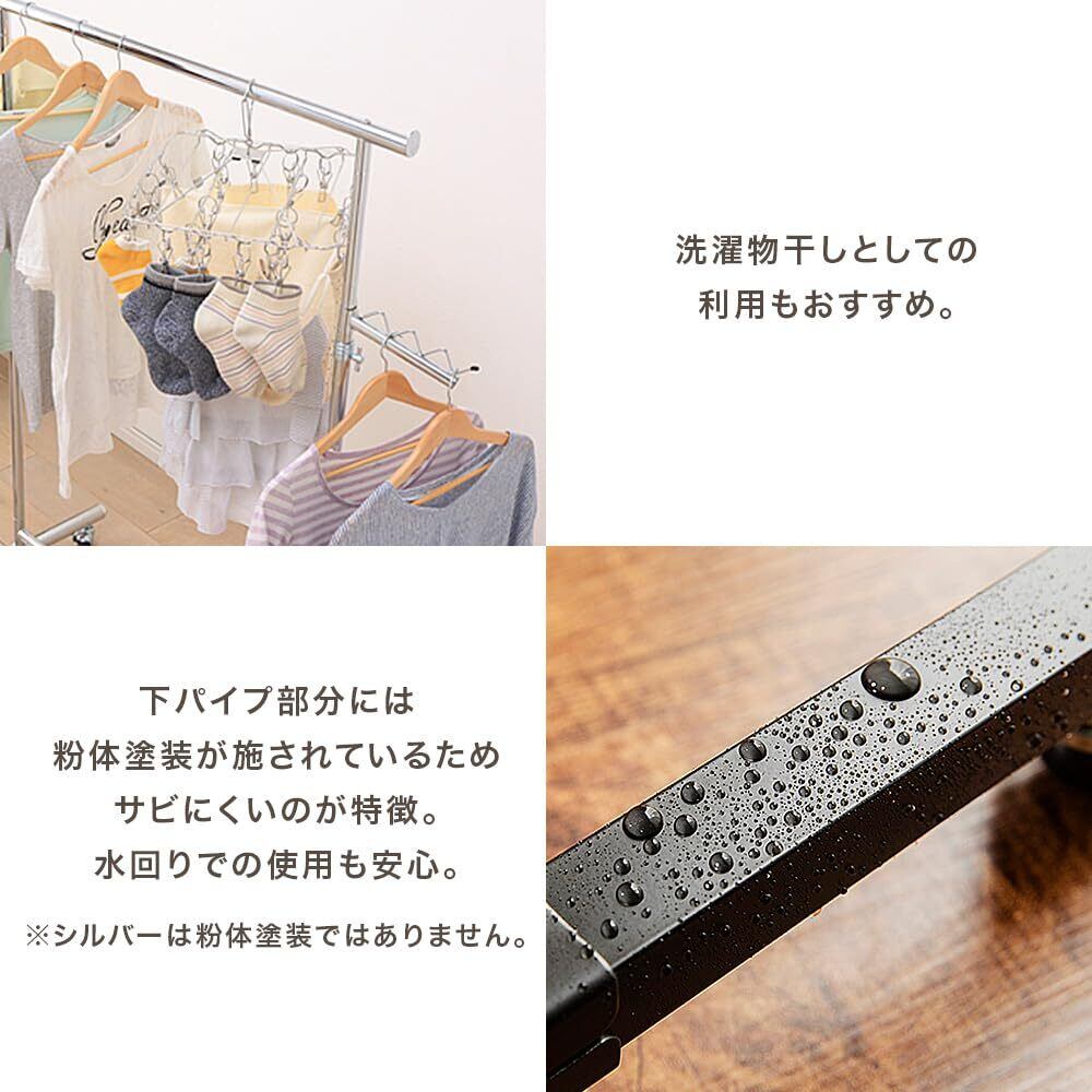 ✨【頑丈な構造】このハンガーラックは、強力なパイプを使用し、耐荷重は驚きの140kgです。衣類をしっかり支え、安心してご使用いただけます。シルバーのカラーで、どんなお部屋にもマッチします。