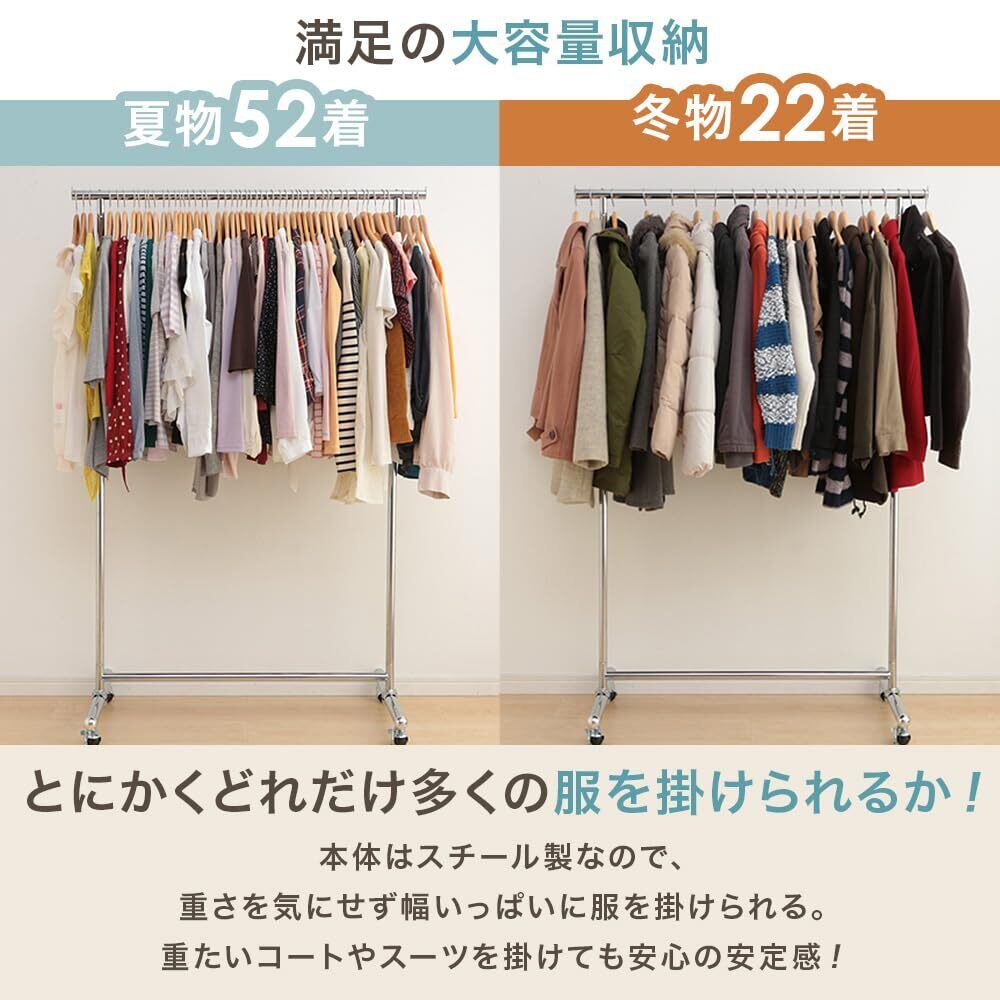 【バツグンの収納力】夏物なら約52着、冬物なら約22着収納できる。本体はスチール製なので、重さを気にせず幅いっぱいにどんどん掛けられる。