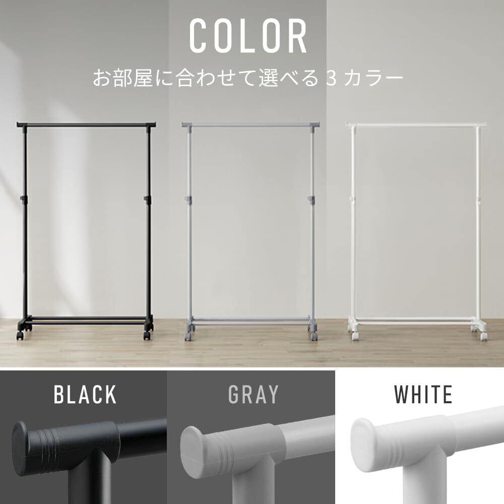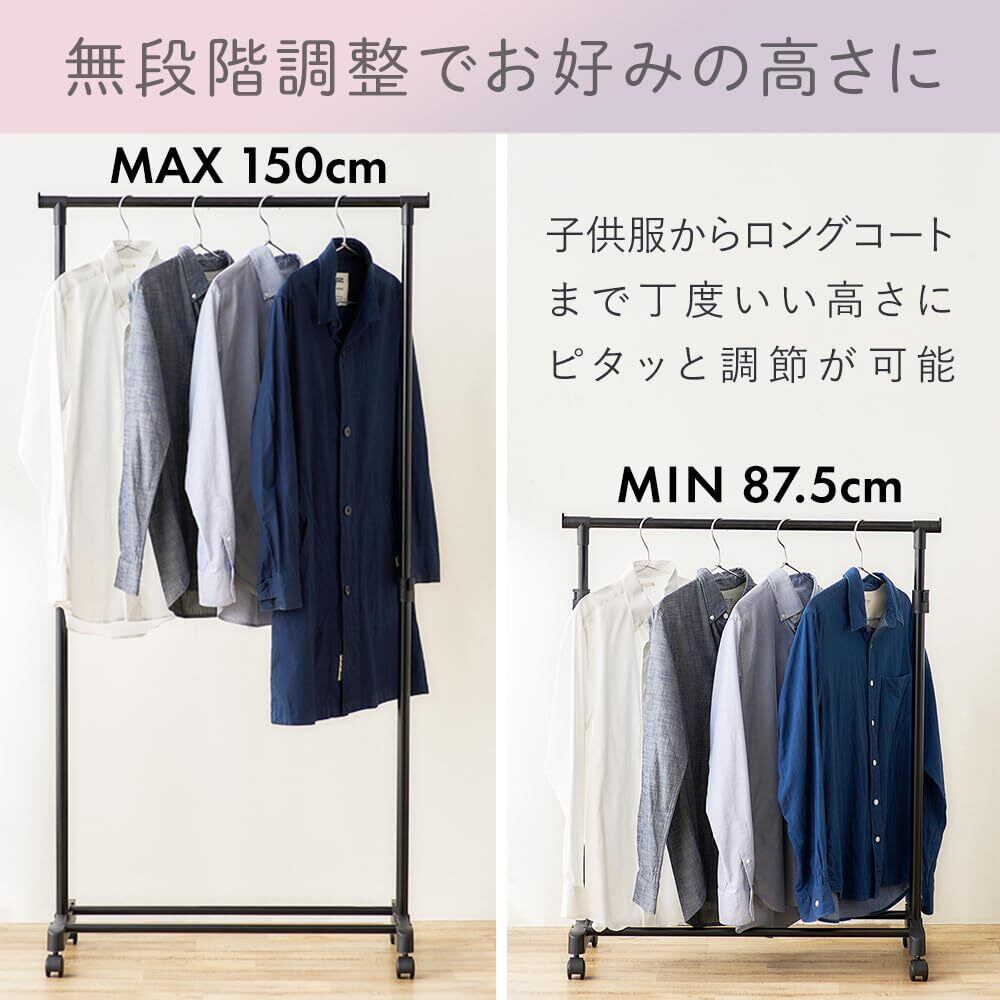 ●ブラック塗装仕上げでインテリアに馴染みやすいパイプハンガーです。●ハンガーパイプの高さは約87.5~150cmの間で、無段階調整可能です。