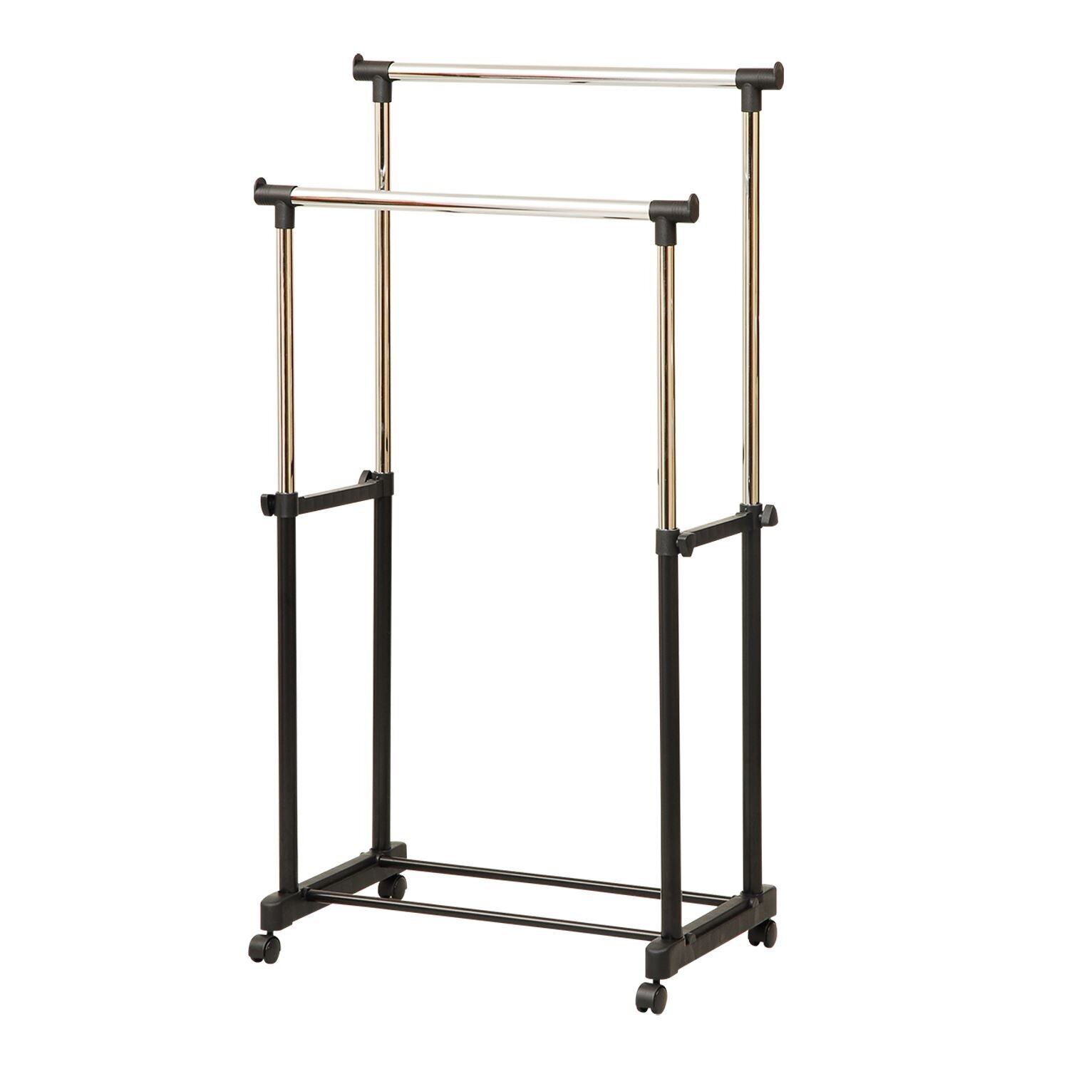 ●衣類が前後に掛けれるダブル仕様パイプハンガー●高さ伸縮するハンガーラック●キャスター付き(ストッパーなし)●組立品(組立時間:約10-20分)