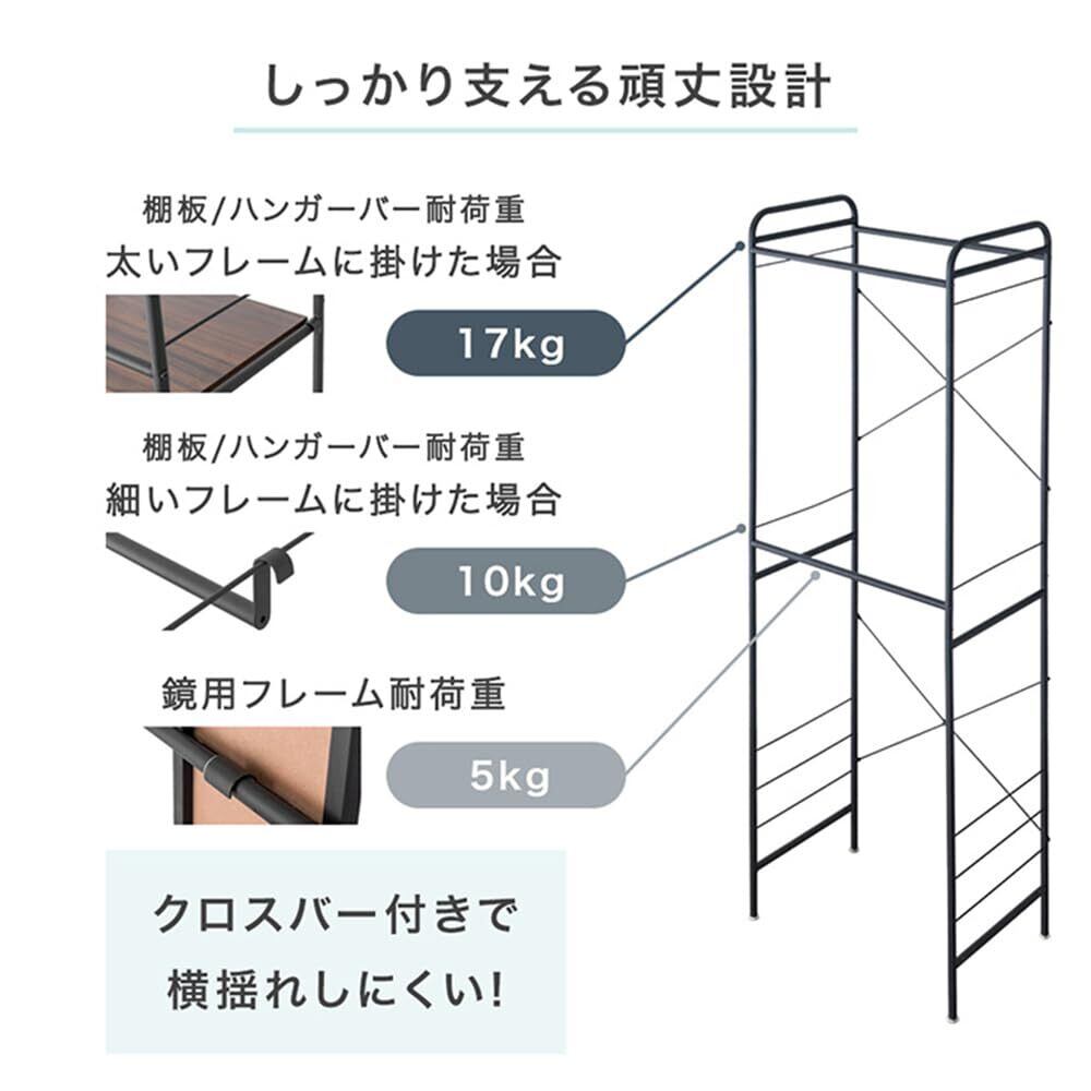 【サイズ】幅60cm:幅60×奥行40×高さ178cm(キャスター時:182cm)【重量】約9.4kg【耐荷重】太いフレーム:約17kg/細いフレーム:約10kg/鏡用フレーム:約5kg