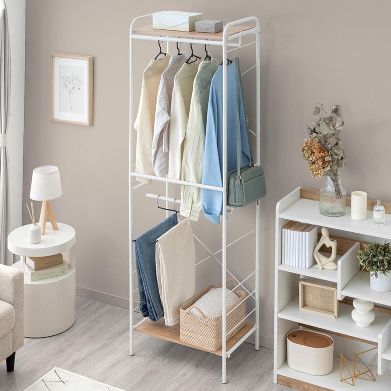 ✨シンプルなデザインがどんなインテリアにもフィットし、部屋の雰囲気を損なうことなく、活用価値が大いに発揮できます。おしゃれな洋服ラックとして、日常をより快適にしてくれるアイテムです。
