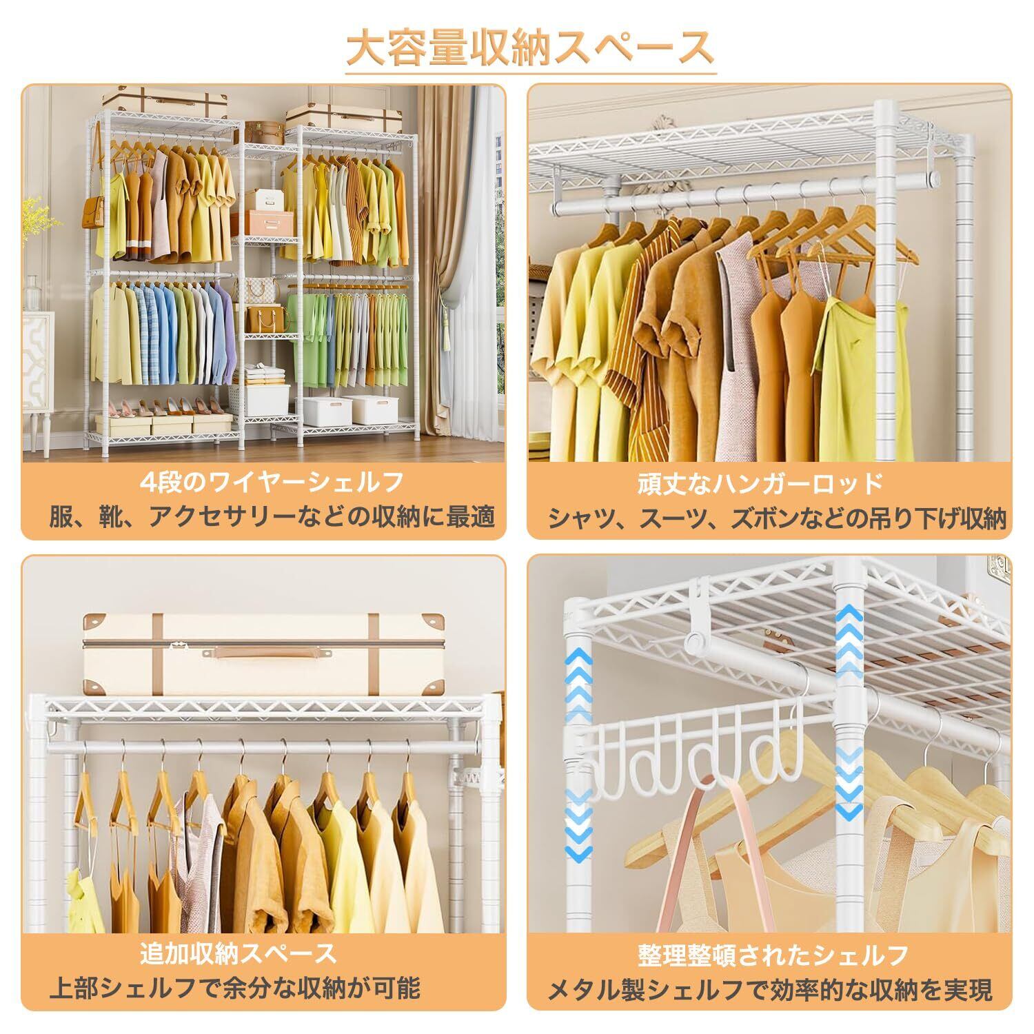 ハンガーラック 頑丈 大容量 洋服ラック 耐荷重450kg ワードローブ クローゼット 洋服掛け ハンガーラック 2段 省スペース おしゃれ 高さ調節可能 防サビ加工 衣類収納 組み立て簡単 家庭用 ワードローブ 幅183×奥行40×高さ193cm (ホワイト)