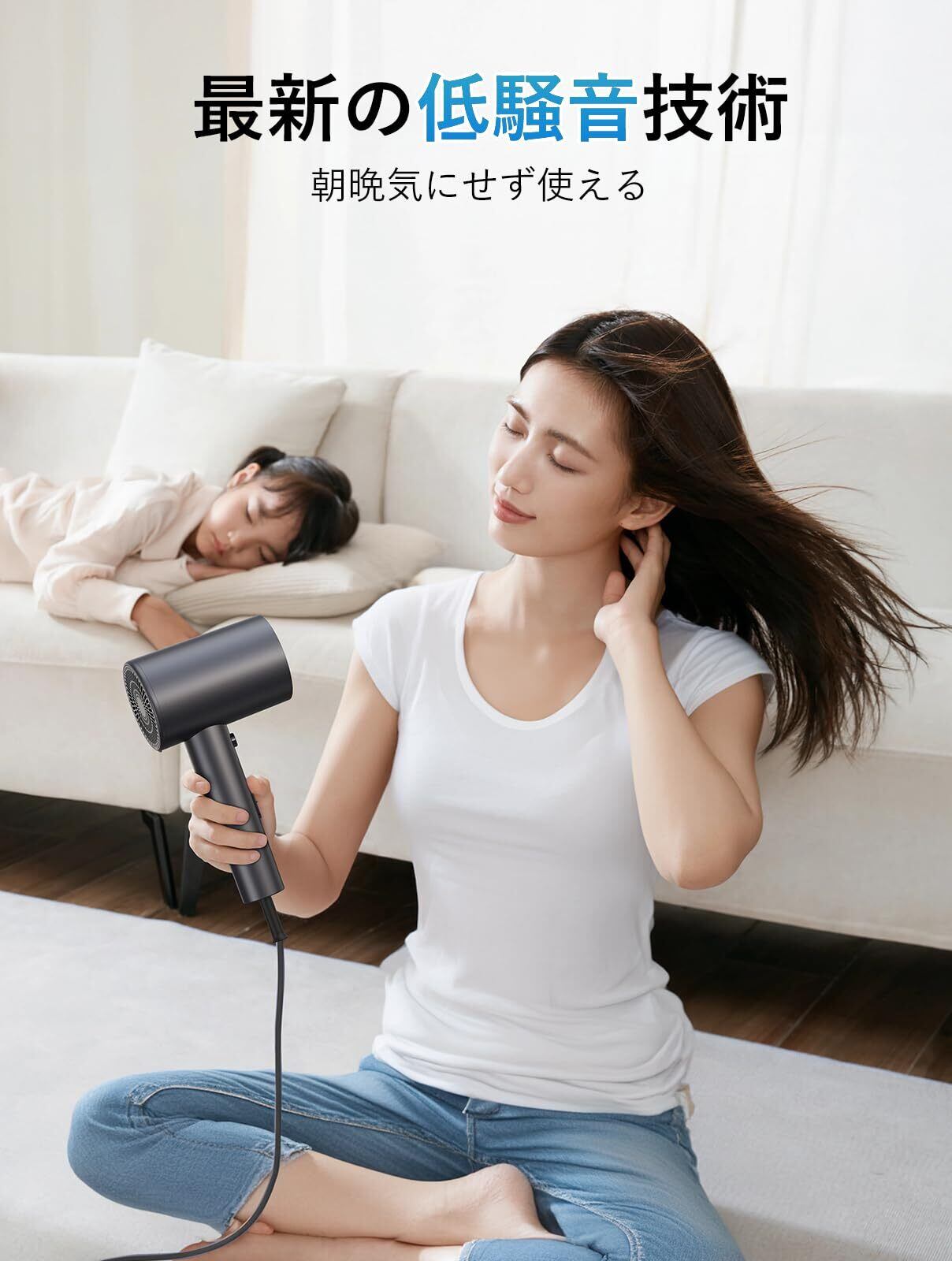 ✨【圧倒的な風量で素早く乾燥】このドライヤーは、強力な風量で短時間で髪を乾かすことができ、忙しい朝も楽々。2億個の高濃度マイナスイオンが髪を保護し、潤いを与えます。
