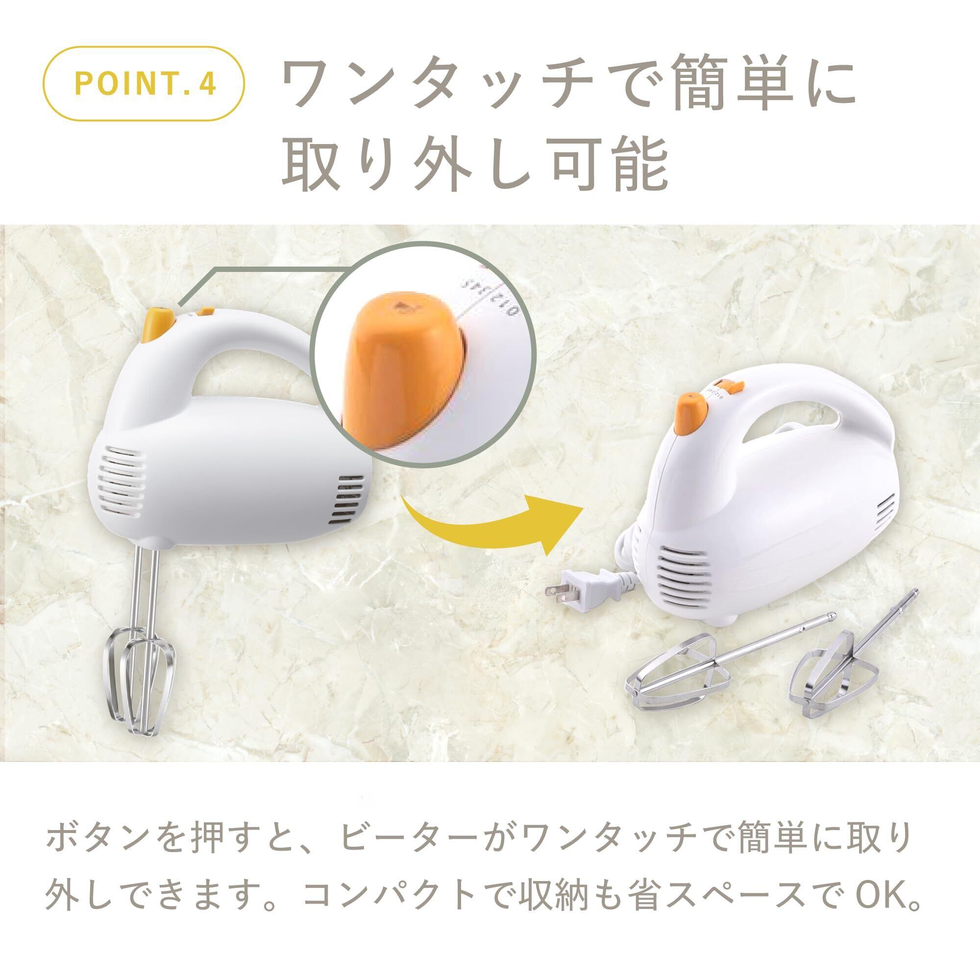 スピードが5段階も切り替えができるうえ、ビーターはワンプッシュで取り外しできる、とても使いやすいアイテム。
