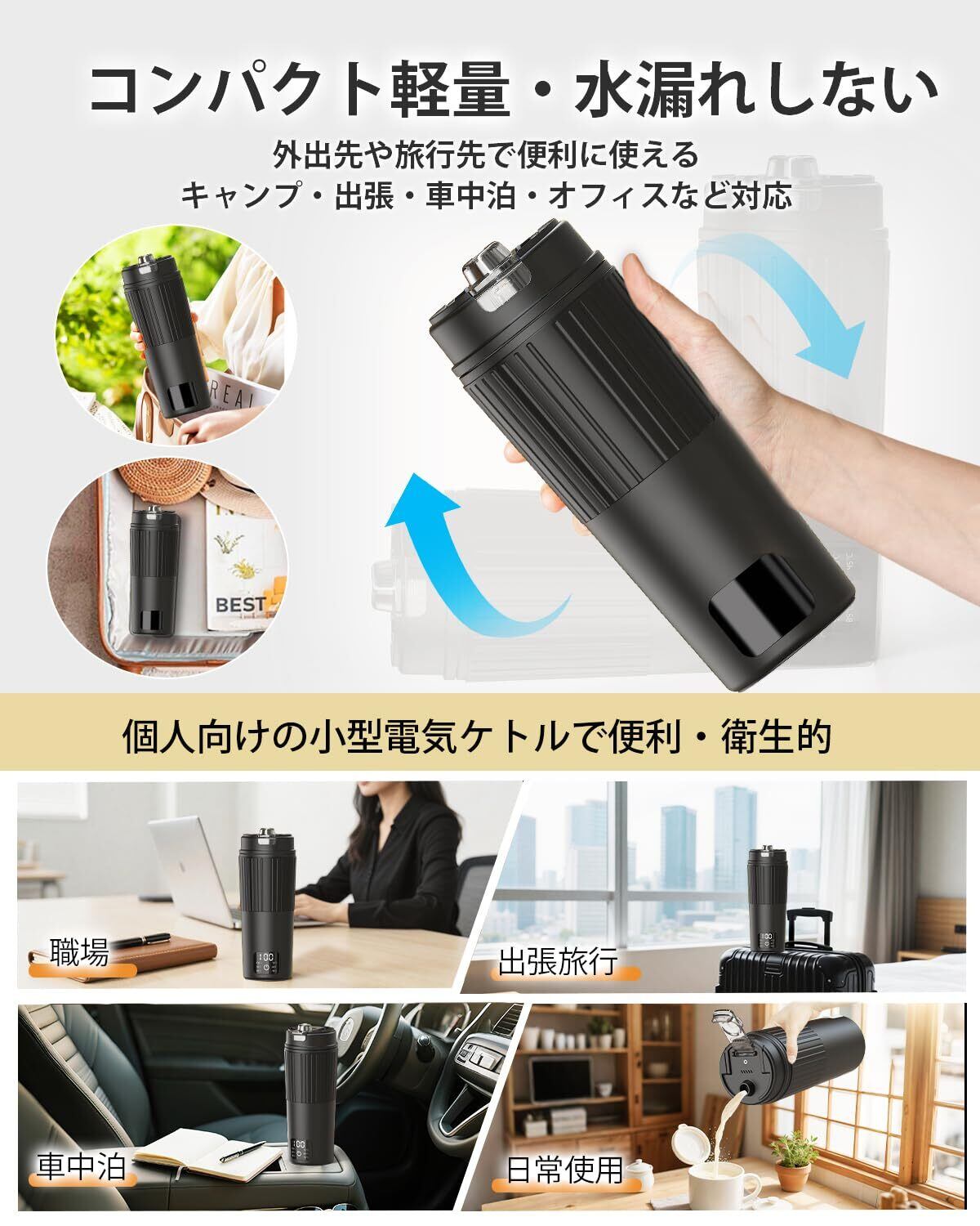 \【◆電気ケトル】【ポータブル】【トラベルケトル】【550ml大容量】【海外対応】【6段階温度調節】【保温】【持ち運びケトル】【400W】【小型】【5分急速沸かし】【一人暮らし】【電気ポット】【漏れない】【携帯ポット】【空焚き防止】【水筒】【電気温水カップ】【お湯・コーヒー・お茶・粉ミルク】【キャンプ】【旅行】【出張】【車中泊】【オフィス対応】【PSE認証済み】【ブラック-550ml】/旅先でも自宅でも、毎日を快適にする多機能電気ケトルが新登場です!