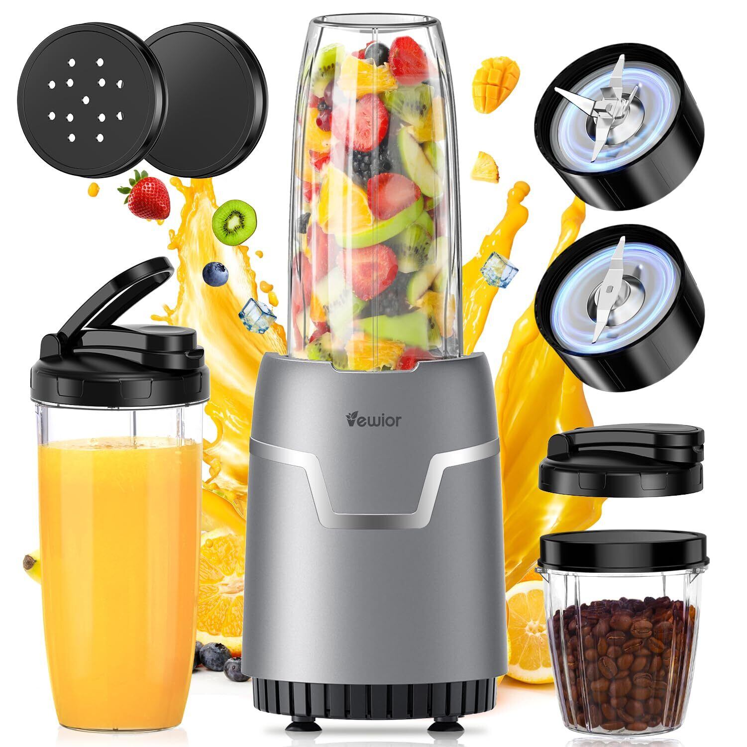 ジューサー ミキサー【2025技術革新版! 1台多役・最大1200Wハイパワー·790ML大容量】VEWIOR ブレンダー 氷も砕ける スムージー/野菜/果物/ジュース/コーヒーミル/離乳食用/ミルクセーキ 790ml*2+300ml*1大容量 6枚刃28000r/min 高速回転 水洗い可能 過熱保護 ギフト キッチン/アウトドア/旅行/出張/ジム/オフィス(11点)