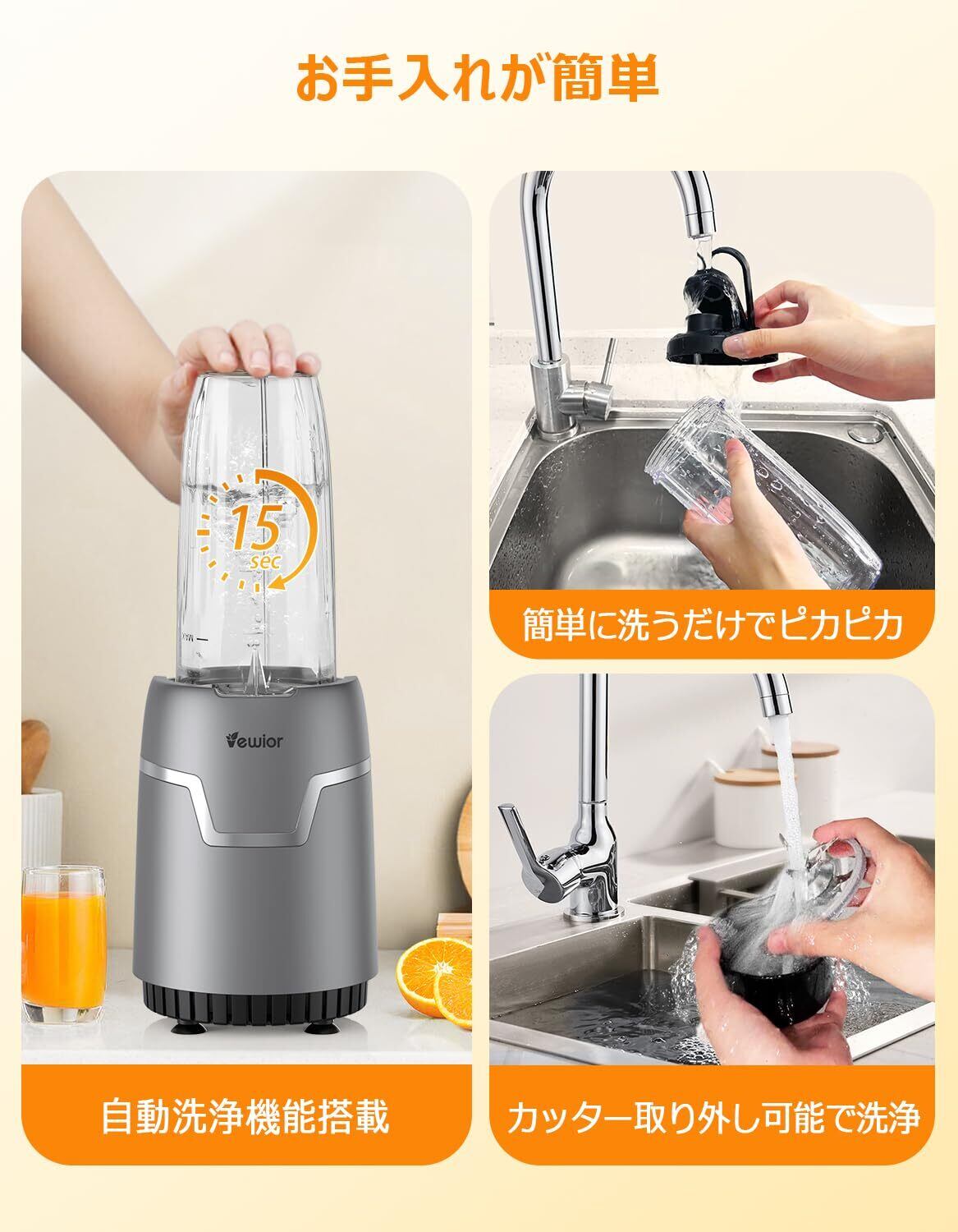 「VEWIOR ジューサー ミキサー」は、キッチンだけでなく、アウトドアや旅行先でも大活躍!持ち運びやすいデザインで、あなたのライフスタイルにフィットします。