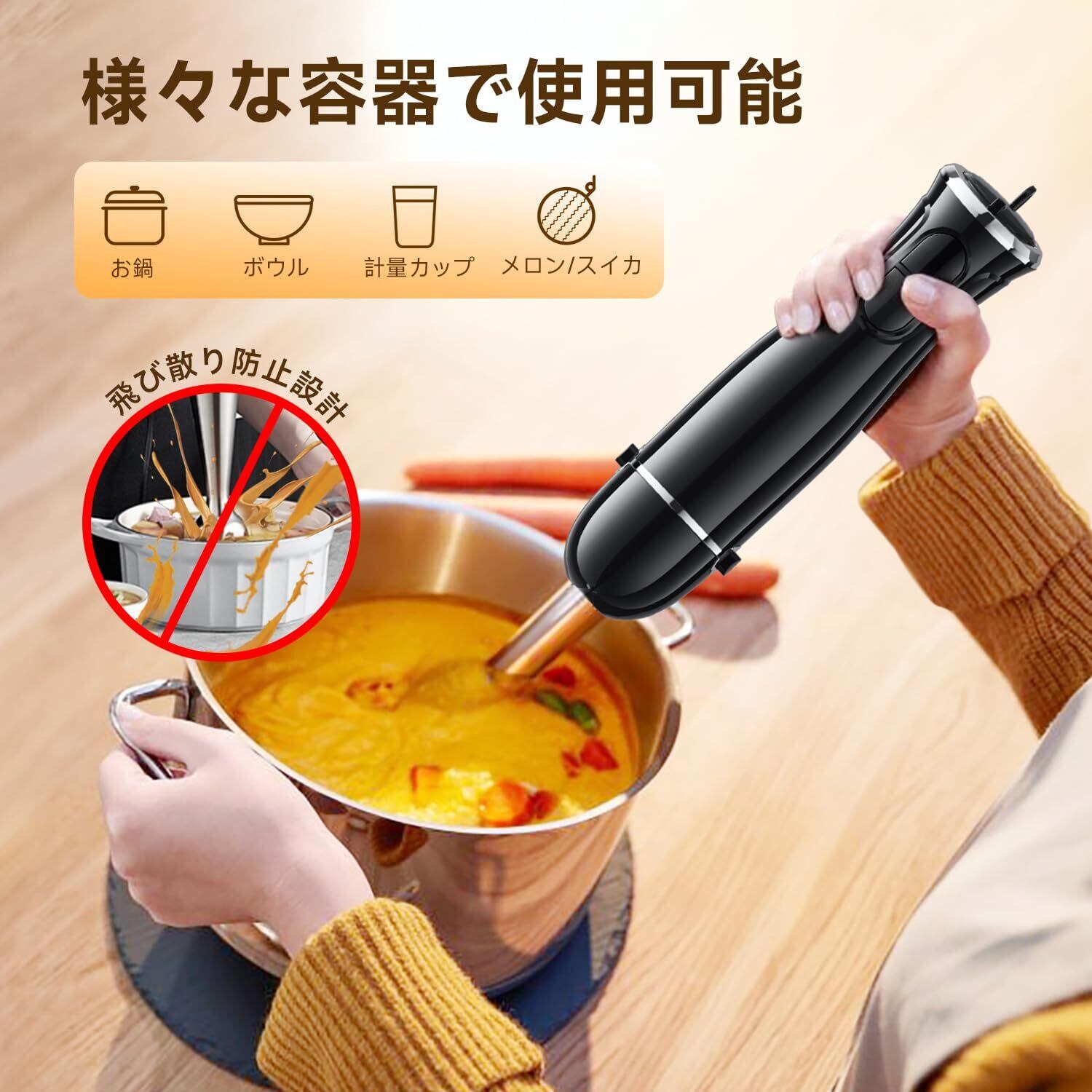 【最強モデル・1台6役】ハンドブレンダー 離乳食 ブレンダー 800W 電動 ミキサー ハンドミキサー 氷・肉・果物・野菜 泡立て器 ジューサー フードプロセッサー 調理器具 家庭用 (ブラック)