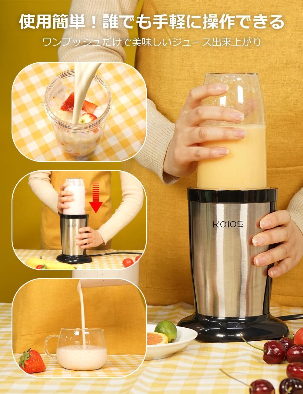 【手軽に楽しくミキサー】究極のパーソナルミキサー、スムージー、シェイク、ジュースを外出先で手軽に作る方法を探していましたか? KOIOS一台多役ミキサーが答えです!簡単なワンプッシュだけで、わずか30秒で手早くお気に入りの飲み物を作ることができます。作ったジューサーを直接飲み、ふたが付いているから、携帯用カップを外してどこでもお楽しみください。