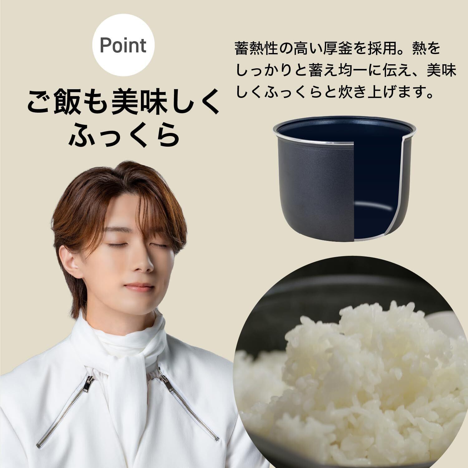 ●見た目だけではなく味にもこだわっており、蓄熱性の高い3.0mmの厚釜を採用したことで、ふっくらとした美味しいごはんを炊き上げる。